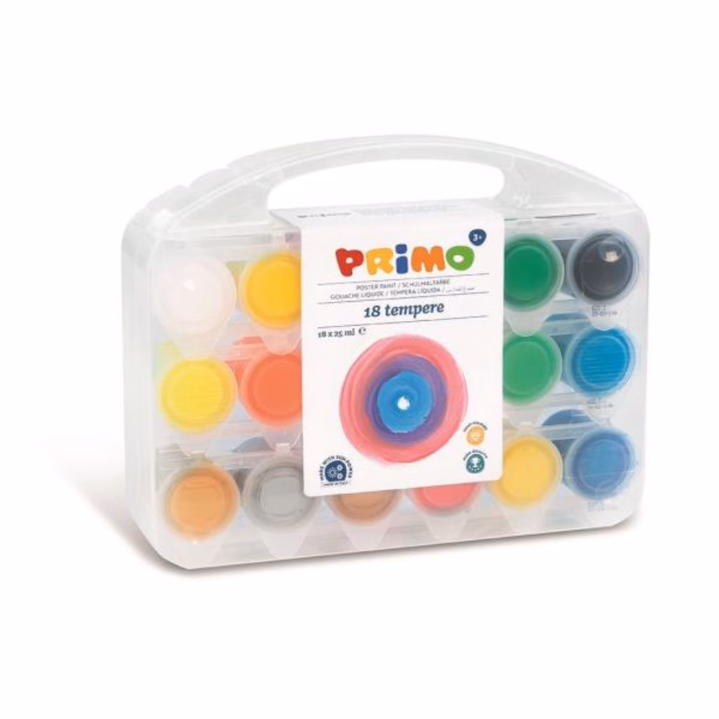 Tempera pronta, fluo, metallizzata, valigetta multiuso, 18 colori.