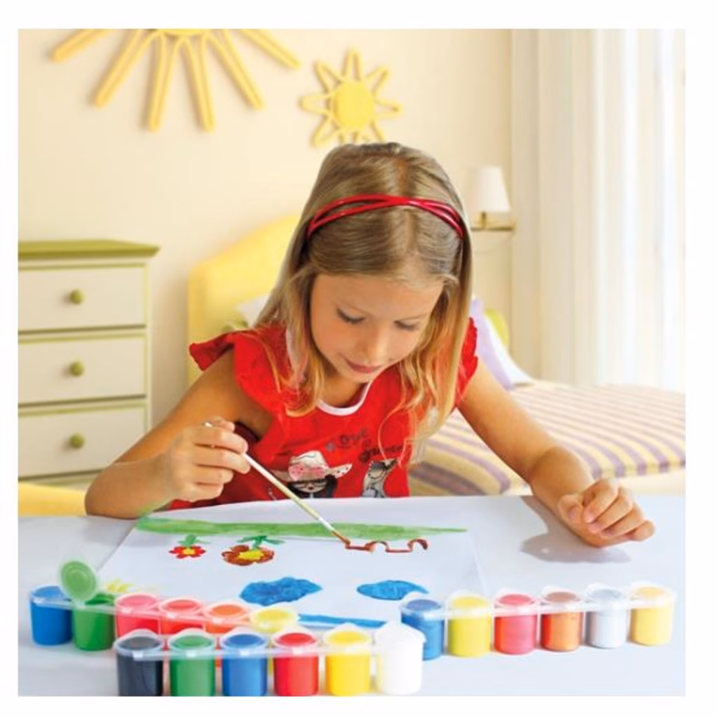 Colore pronto all uso, di prima qualità, in pratica valigetta riutilizzabile con 6 colori fluo, 6 metallizzati e 6 classici. Il set permette di conoscere e sperimentare 3 diverse famiglie di colori, che insieme si completano e si esaltano. I colori, mantenendo le singole caratteristiche d'uso, si possono utilizzare su superfici diverse come carta, cartoncino, cartone, legno, stoffa, vetro, terracotta, metallo e plastica. Si può fissare con vernice o fissativo idoneo. Rimuovere subito le macchie secondo istruzioni.