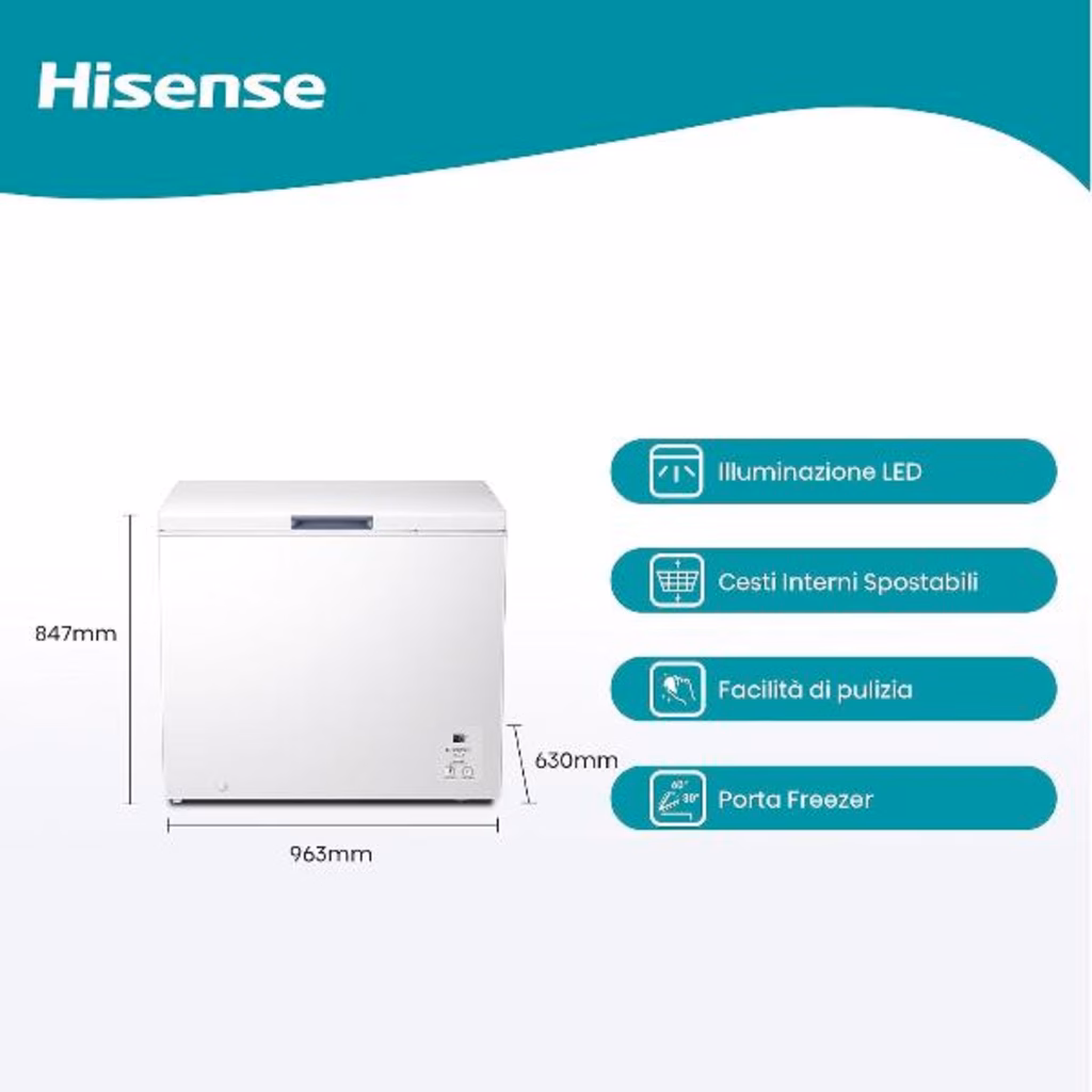 Congelatore orizzontale a libera installazione 248 litri E 84,70x96,30x63 cm Bianco HISENSE FC321D4A