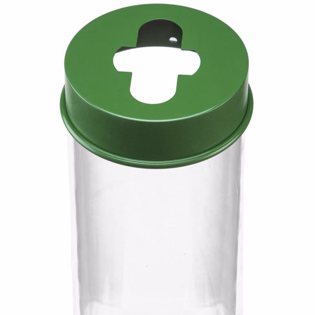 Tubo in policarbonato trasparente - base e coperchio in acciaio verniciato - ideale per la raccolta di batterie esauste - disco assorbente sul fondo- rapido controllo del contenuto - etichette autoadesive opzionali