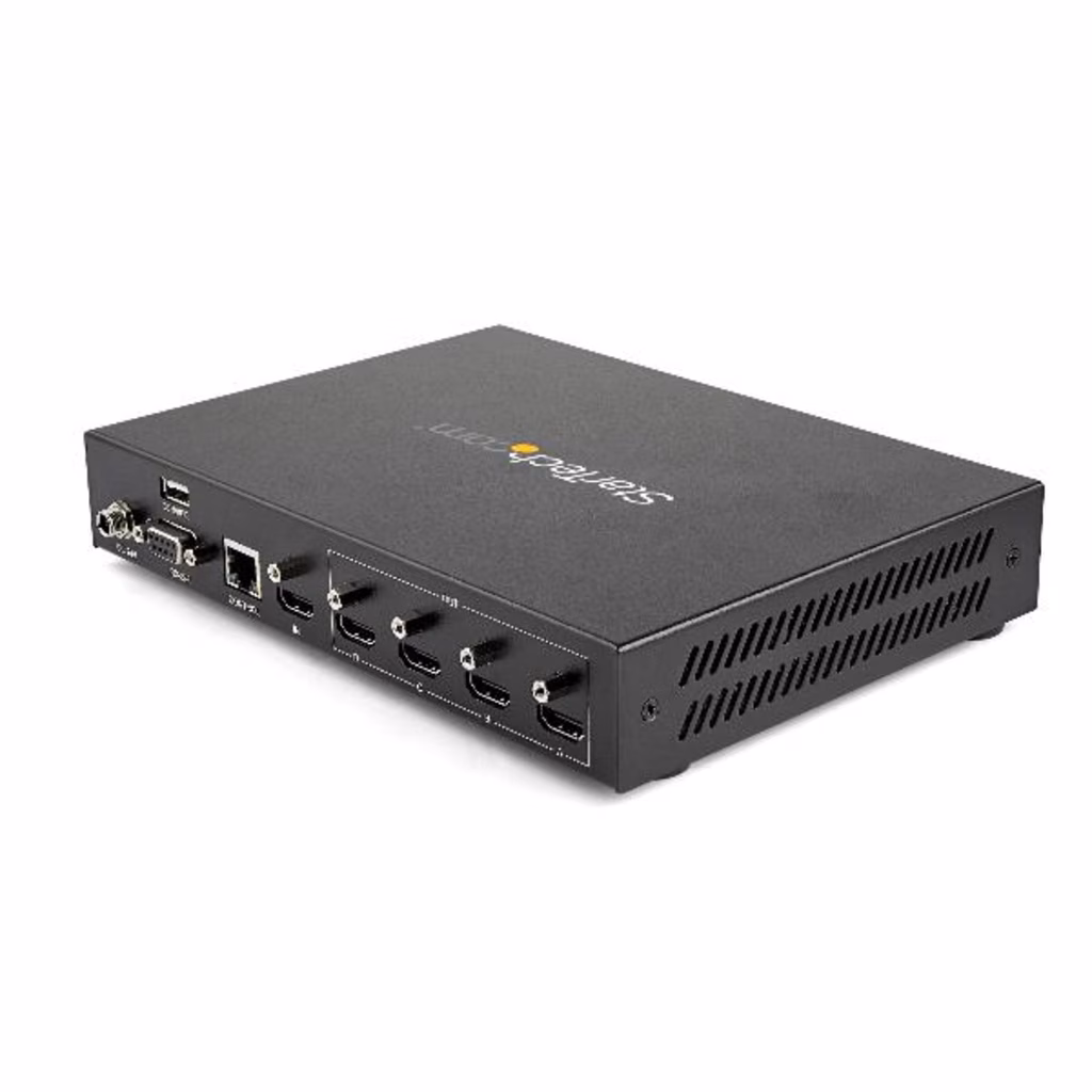 Questo controller video wall consente di collegare la sorgente video HDMI a più display HDMI e supporta risoluzioni Ultra HD, nonché la tecnologia audio surround 7.1. È possibile utilizzare il controller come sdoppiatore video per distribuire lo stesso segnale HDMI a quattro display oppure combinare la sorgente video su quattro display per creare un video wall 2x2.