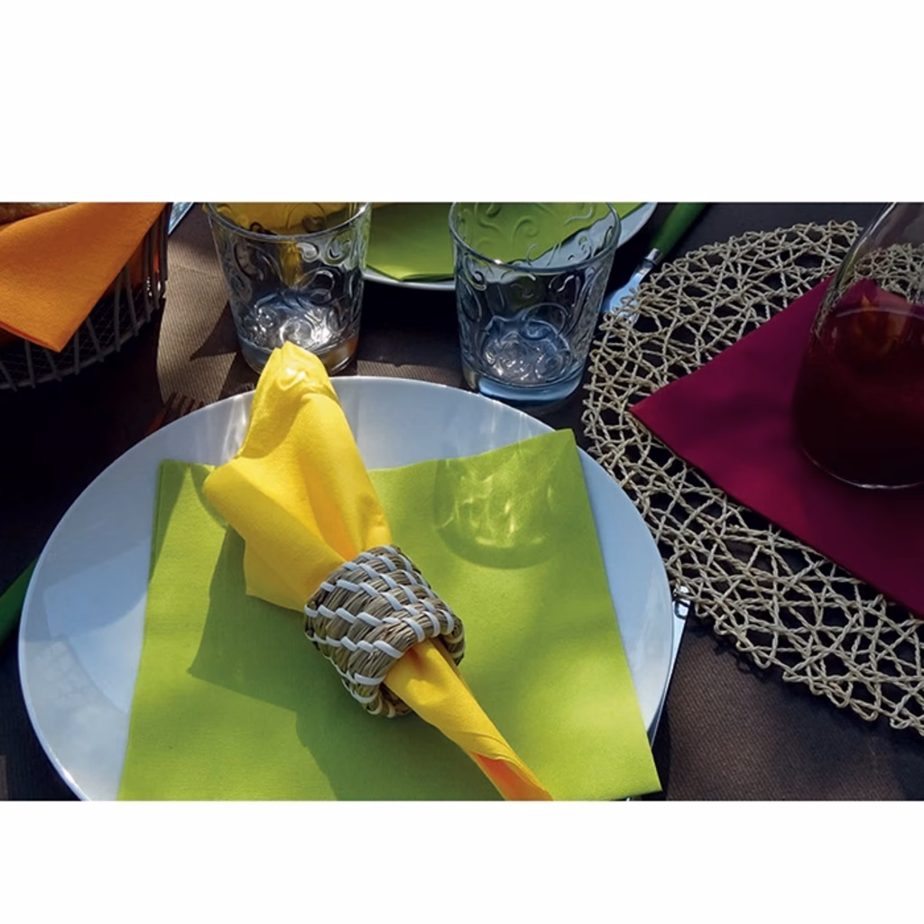 Realizzati in materiale ecologico e completamente compostabile per garantire il massimo rispetto per l'ambiente. Non provengono dalla manipolazione di sostanze chimiche o sostanze sintetizzate in laboratorio, bensì da risorse rinnovabili e non sono tossici. Si smaltiscono nell'umido. Eleganti tovaglie coprimacchia in Airlaid, tessuto in cellulosa morbido e consistente le cui fibre vengono lavorate "a secco" con un'avanzata tecnica ad aria, ottenendo un risultato molto simile alla stoffa.