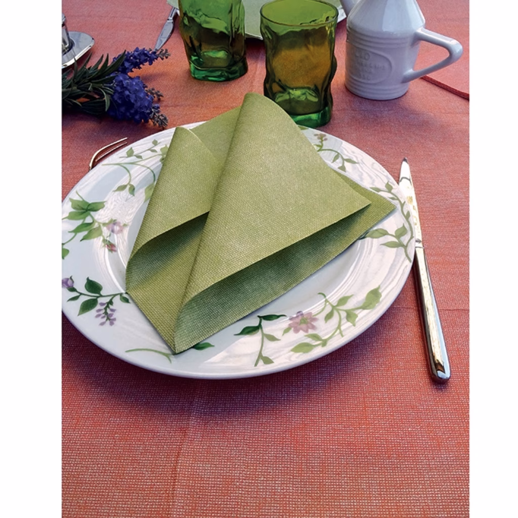 Realizzati in materiale ecologico e completamente compostabile per garantire il massimo rispetto per l'ambiente. Non provengono dalla manipolazione di sostanze chimiche o sostanze sintetizzate in laboratorio, bensì da risorse rinnovabili e non sono tossici. Si smaltiscono nell'umido. Eleganti tovaglie coprimacchia in Airlaid, tessuto in cellulosa morbido e consistente le cui fibre vengono lavorate "a secco" con un'avanzata tecnica ad aria, ottenendo un risultato molto simile alla stoffa. La cellulosa usata per i nostri prodotti è ricavata da fibre di legno provenienti da foreste certificate PEFC, gestite secondo i migliori standard di sostenibilità ambientale.