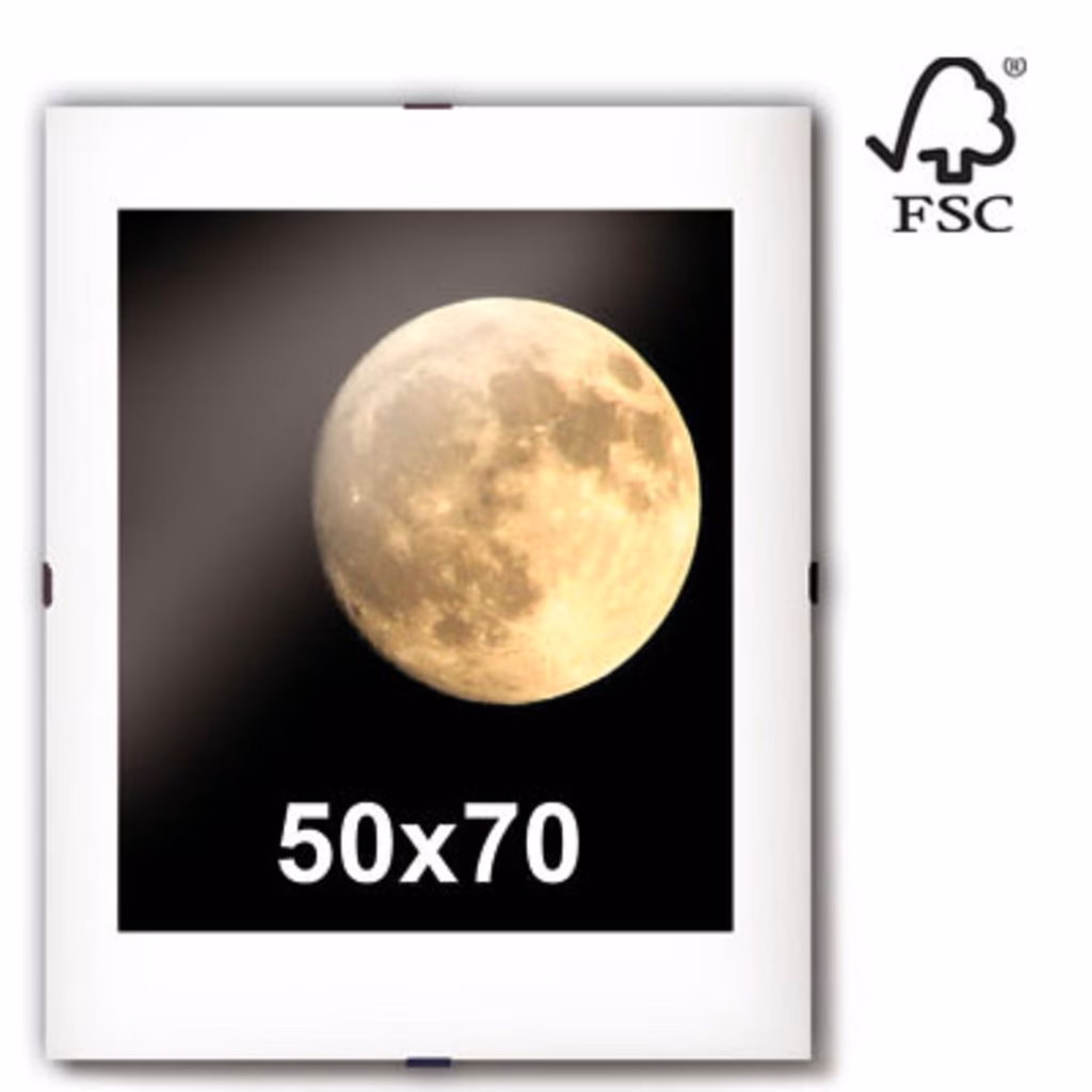 Cornice a giorno in Crilex da 0,7mm alta trasparenza con trattamento anti-ingiallimento - ultra resistente e più leggera rispetto alle cornici in vetro - supporto in MDF (pannello di fibra legnosa a media densità) certificato FSC® - fermagli antiruggine