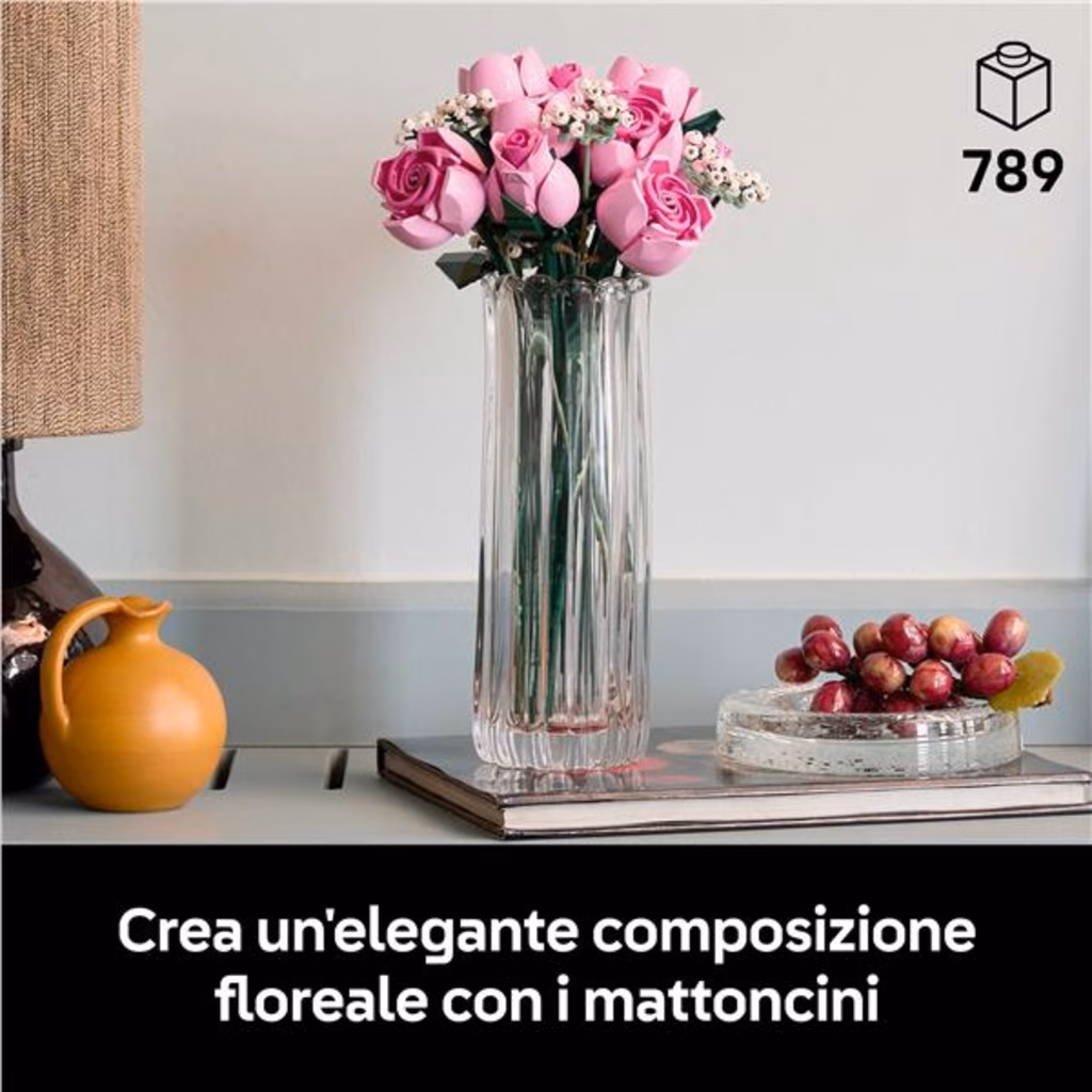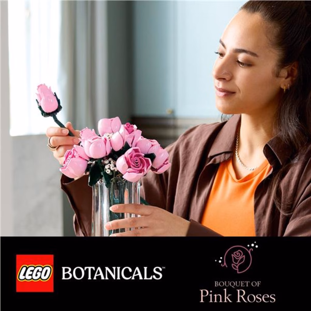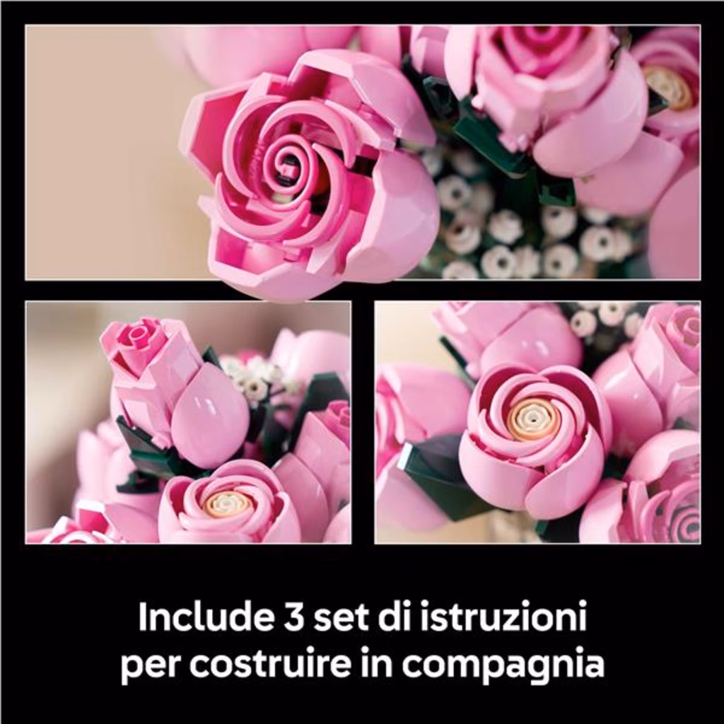 Crea unelegante composizione floreale in mattoncini e ammira i rosei dettagli con questo set da costruzione Bouquet di rose rosa LEGO® Botanicals (10374) per adulti. Dedicati a un progetto coinvolgente realizzando meticolosamente questo bouquet LEGO che presenta 12 rose rosa in diverse fasi di fioritura: 4 in piena fioritura, 4 in fiore e 4 boccioli. I fiori presentano sfumature rosa per una maggiore autenticità e il bouquet contiene anche 4 incantevoli rametti di gipsofila con piccoli fiori bianchi. Ideale come progetto individuale o di gruppo, il set include 3 libretti di istruzione per la costruzione, che consentono di costruire i fiori con amici o familiari prima di esporre le rose con orgoglio come decorazione floreale.I fiori sono il regalo perfetto per ogni occasione, quindi dona questo kit di costruzione per la festa della mamma, per San Valentino o per il compleanno di donne, uomini e appassionati di fiori, che saranno felici di costruire un bouquet che durerà per sempre