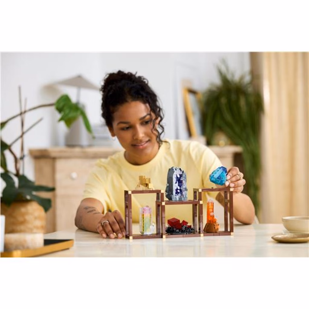 Una decorazione unica per il soggiorno: celebra la bellezza della natura con la Collezione di Minerali LEGO® Ideas, con le coloratissime riproduzioni di 6 minerali e 3 scaffali espositivi6 minerali: ricrea la pirite dorata, l ametista viola, la fluorite blu, la tormalina rossa, la rodocrosite rosata e il quarzo arancione utilizzando i mattoncini LEGO®Un esperienza creativa coinvolgente: rilassati assemblando i mattoncini LEGO® trasparenti e cattura i colori vivaci e i riflessi di questi mineraliDecorazione artistica personalizzabile: posiziona i 3 scaffali costruibili insieme o separatamente e fissa i minerali ai diversi ripiani per cambiare l esposizioneMeraviglioso regalo per i collezionisti di rocce: regala a te stesso o regala questo kit per adulti ad altri amanti della natura e dell arte e ai collezionisti di set LEGO®Istruzioni per la costruzione in 3D: goditi ogni fase della costruzione con l app LEGO® Builder; potrai vedere i tuoi modelli da tutte le angolazioni mentre li costruisci, seguire i tuoi progressi e salvare tutti i tuoi set in un unico postoLa scelta dei fan LEGO®: questo set LEGO per adulti fa parte della collezione LEGO Ideas, in cui ogni set da costruzione è creato da un fan designer, votato dai fan LEGO e prodotto dal LEGO Group