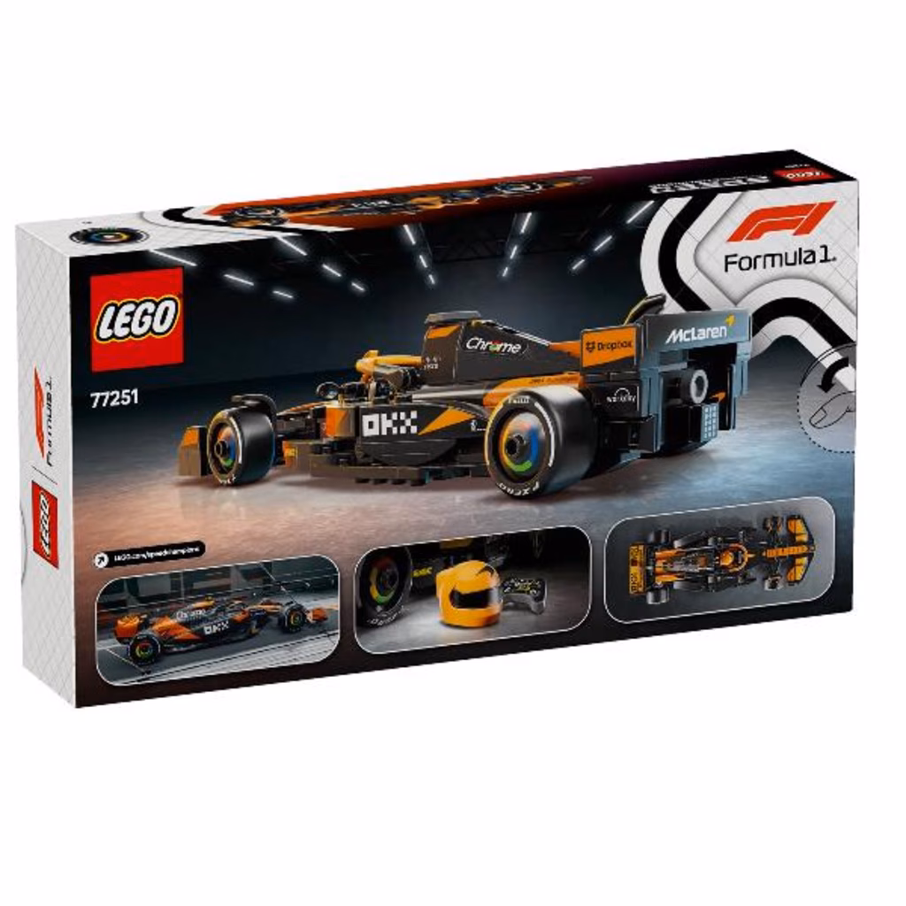 Vivi tutte le emozioni delle corse di Formula 1® con questo set dell Auto da corsa McLaren F1® Team MCL38 LEGO® Speed Champions (77251) per i bambini e le bambine dai 10 anni in su. I collezionisti di auto piccoli e grandi possono costruire, esporre e gareggiare con un modello di auto da corsa di F1 con dettagli di design della versione reale che ha gareggiato nel mondiale di Formula 1 del 2024.
