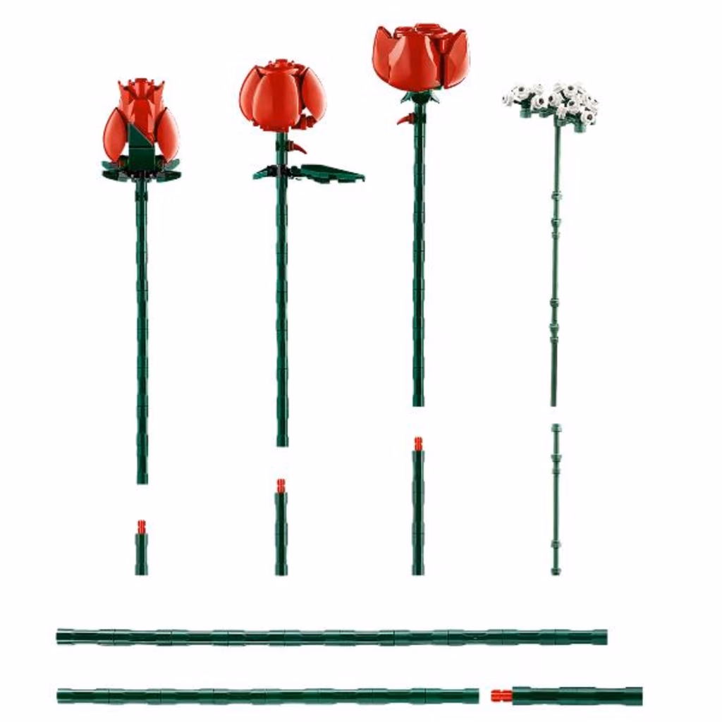 Un piacere da costruire, questo bouquet LEGO raffigura una dozzina di rose rosse, di cui 4 in piena fioritura, 4 in fiore e 4 in bocciolo, con lunghi steli verdi per l esposizione in vaso, più 4 rametti di gipsofila con piccoli fiori bianchi. Facile da assemblare, il bouquet è un display elegante in qualsiasi spazio ed è combinabile con altri set della Collezione Botanica LEGO.