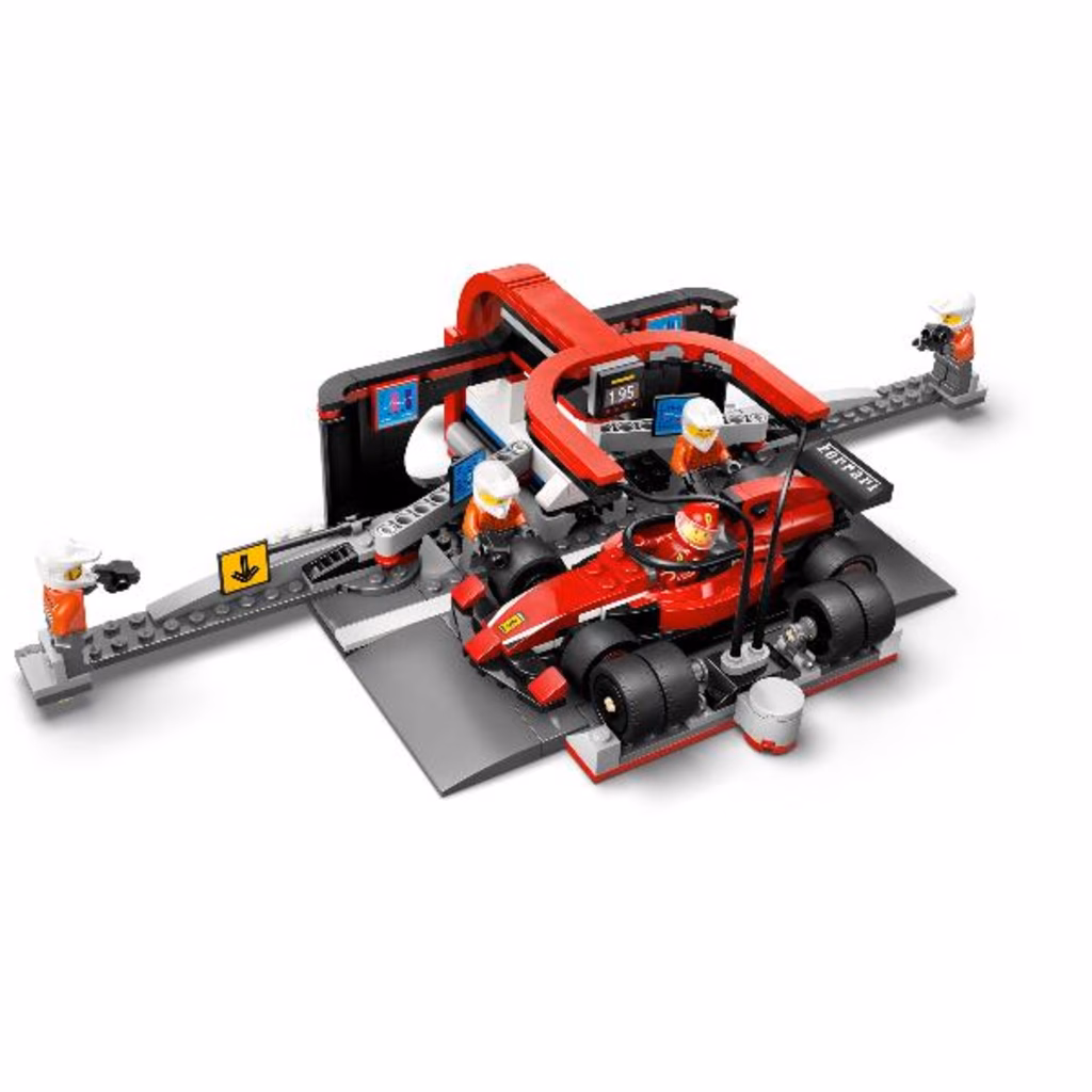 Questo set include tutto ciò di cui i bambini hanno bisogno per pit stop fulminei, comprese nuove gomme slick, pistole per le ruote e meccanici posizionabili al semplice tocco di una levetta per un cambio pneumatici turbo. Completo di auto da corsa Ferrari di Formula 1® giocattolo, più le minifigure del pilota e dei 4 meccanici ai box, questo set di gioco è perfetto per i giovani appassionati di corse.