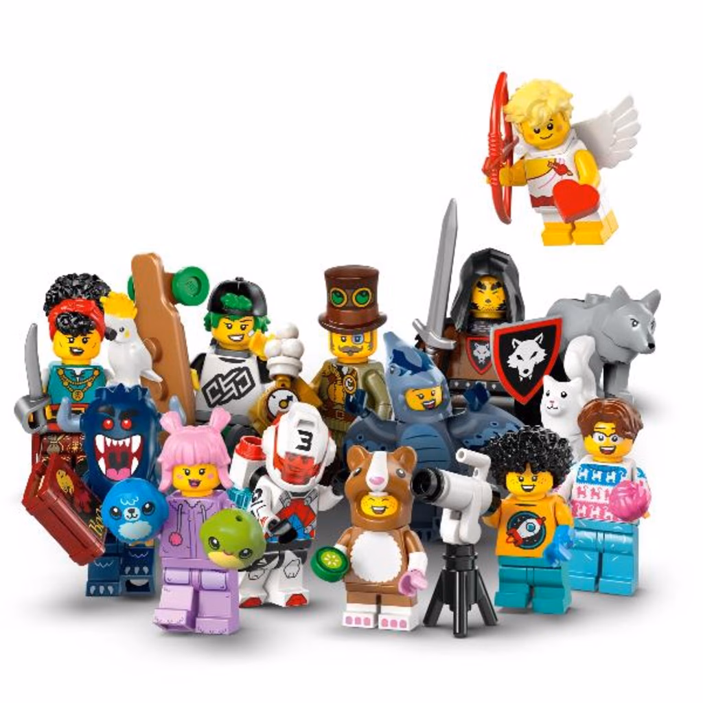 C è 1 minifigure LEGO a sorpresa in ogni scatola e un totale di 12 personaggi da collezionare: Domatore di lupi, Timoniera pirata, Inventore steampunk, Fan in costume di pterodattilo, Babau, Pilota di jetpack, Amante dei gatti, Longboarder, Bambina astronoma, Cupido, Fan in costume di criceto e Collezionista di peluche.