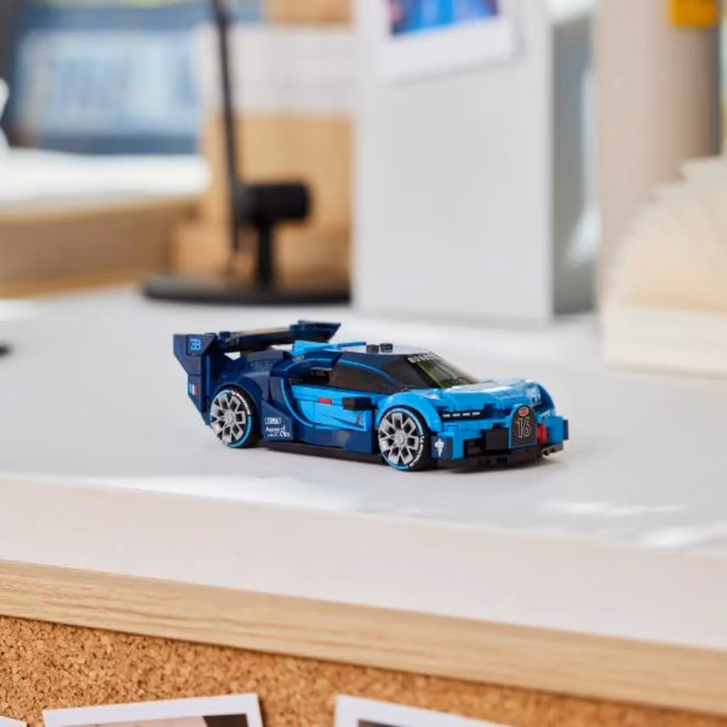 I bambini e le bambine dai 9 anni in su possono costruire ed esporre questa spettacolare Super auto sportiva Bugatti Vision GT LEGO® Speed Champions (77253). Per la prima volta in assoluto, questo elegante kit di modello Bugatti consente ai fan delle auto e della serie di videogiochi Gran Turismo di esplorare l eleganza e le prestazioni di questa meraviglia ingegneristica. Questo modello di auto Bugatti include i dettagli dell auto creata da Bugatti per il videogioco Gran Turismo nel 2015. Include una griglia anteriore a ferro di cavallo, un ala posteriore, esclusivi fari a 8 occhi , un aletta sul tetto e grandi pneumatici con la scritta Michelin . L auto giocattolo include anche una minifigure che indossa una tuta Bugatti da posizionare nel cockpit per gareggiare. I set LEGO® Speed Champions consentono ai bambini delle auto di creare le repliche di alcuni dei veicoli più famosi del mondo. I bambini possono costruire con confidenza utilizzando l app LEGO Builder: ingrandisci, ruota in 3D e tieni traccia dei progressi con istruzioni digitali facili da seguire.