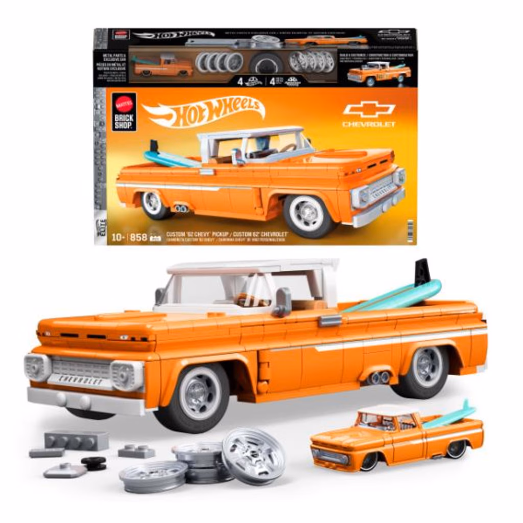 Allaccia le cinture e mettiti in viaggio con il Custom 62 Chevy Pickup completamente costruibile in scala 1:16. Questo dettagliato e autentico set include parti extra per poterlo personalizzare, tra cui un motore a vista, un foglio adesivi, cerchi in metallo, un'iconica targa e un'esclusiva auto in metallo da collezionare ed esporre. Dettagli originali Chevy: Con sportelli che si aprono, sospensioni regolabili e tavola da surf sul retro che rendono il veicolo ancora più autentico.