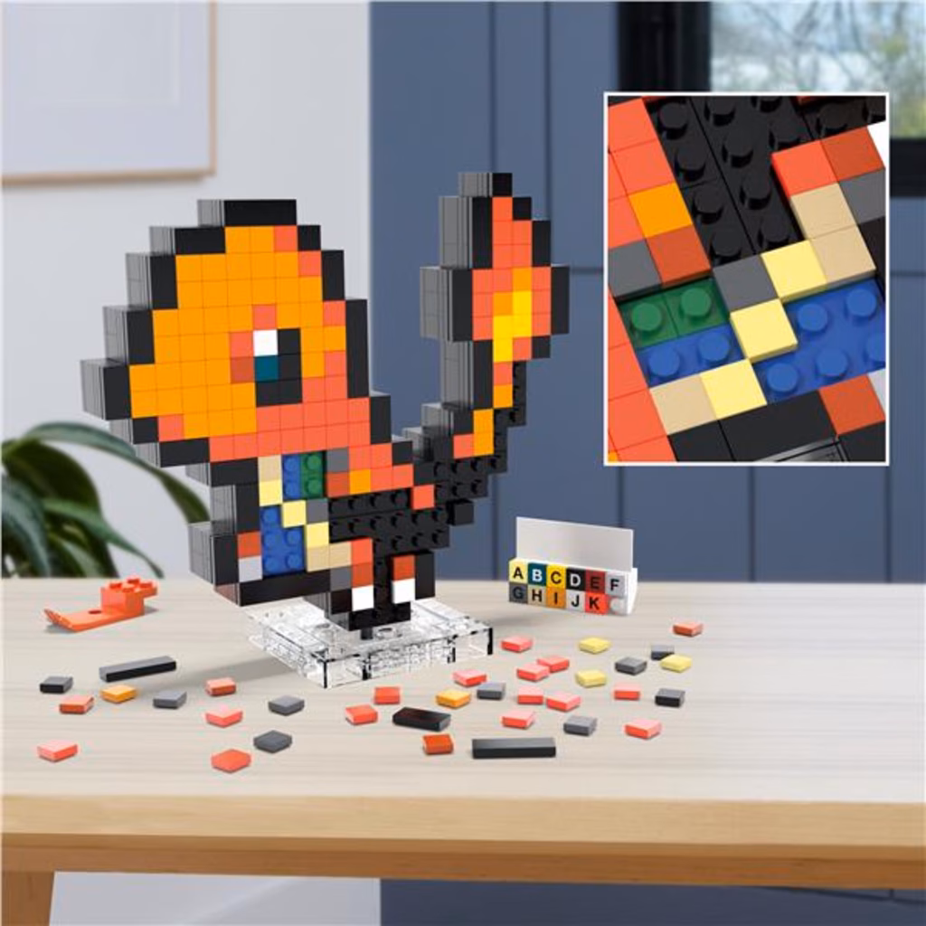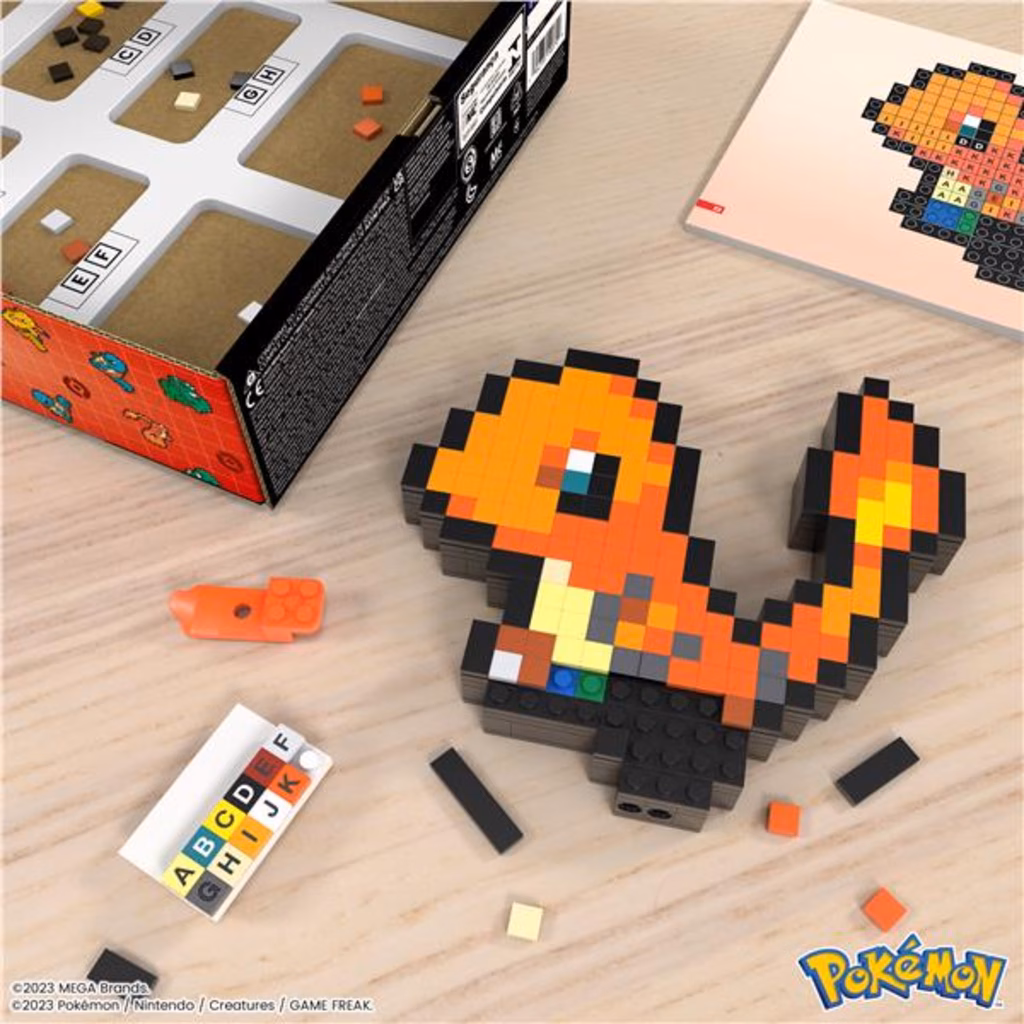 MEGA HTH76 gioco di costruzioneDecorate your space and build some of your favourite Pokémon with MEGA. Build Charmander one brick at a time and create a retro-inspired figure, featuring official Pokémon Pixel Art. Display it on your desk, or mount it on the wall to show off your love of Pokémon. Pair with other Pokémon in the series; each sold separately.
