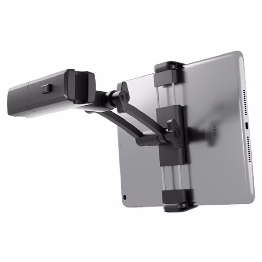 Posiziona il tuo iPad in orientamento verticale o orizzontale con il braccio girevole di Cargo III. Per evitare riflessi sullo schermo dell'iPad, puoi anche inclinare l'iPad all'angolazione preferita.