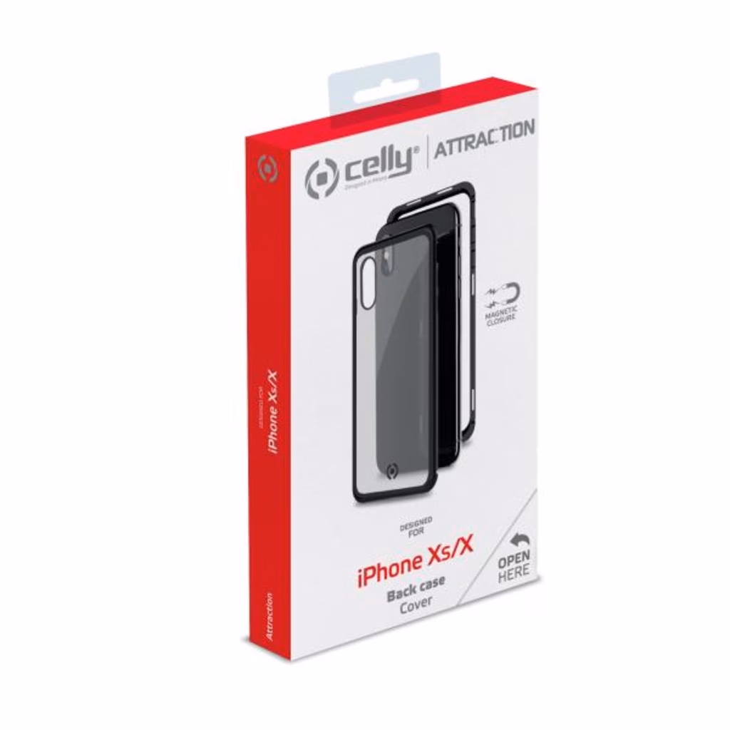 Cover alluminio + vetro temperato nero CELLY ATTRACTION - Apple iPhone Xs/ iPhone X ATTRACTION900BK