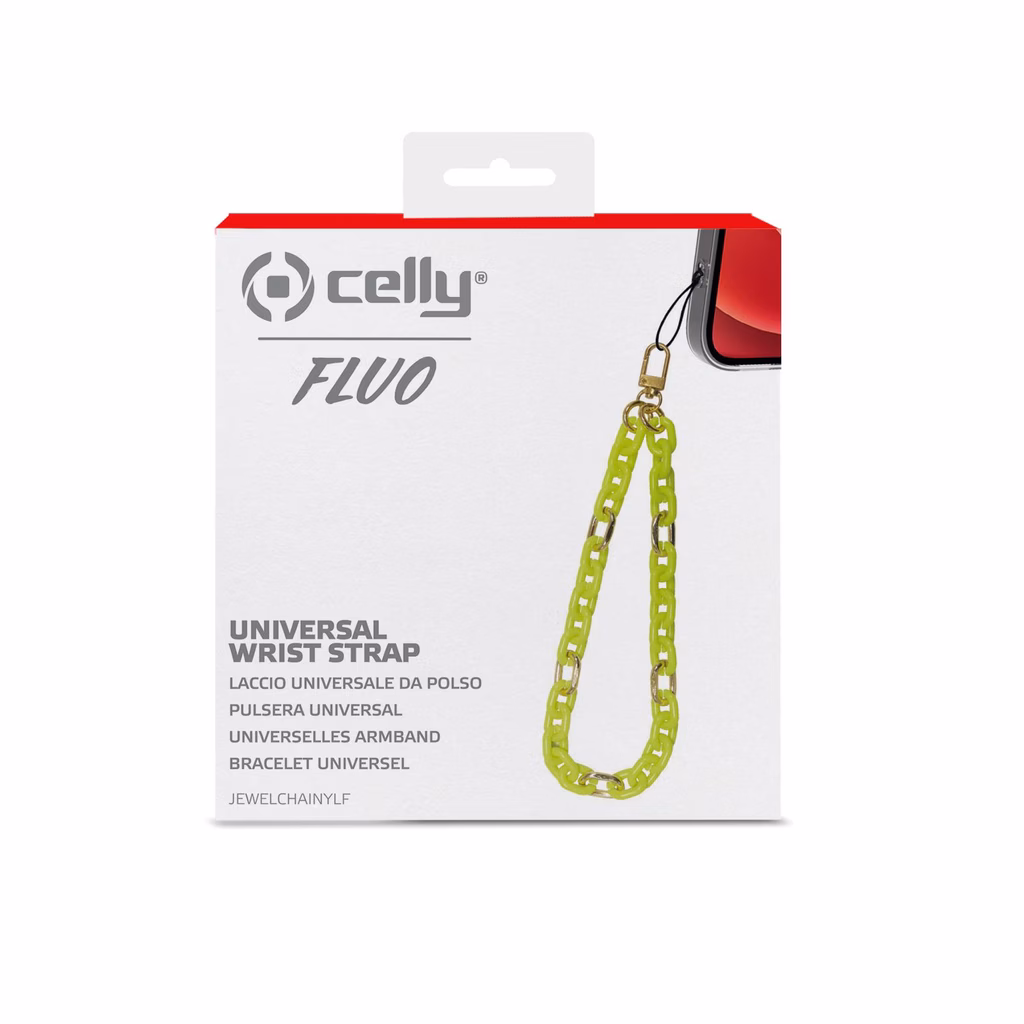 JEWELCHAIN è una catena da polso in colori fluo, pratica e moderna e compatibile con tutti i telefoni.