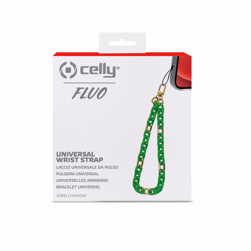 JEWELCHAIN è una catena da polso in colori fluo, pratica e moderna e compatibile con tutti i telefoni.