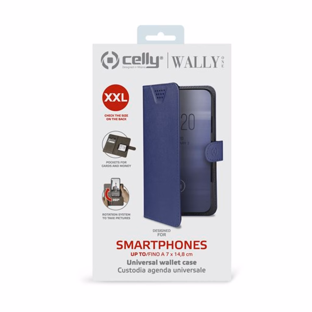 Cover similpelle blu CELLY WALLY ONE - Universal Case Display Size 5.0"-5.5" WALLYONEXXLBL