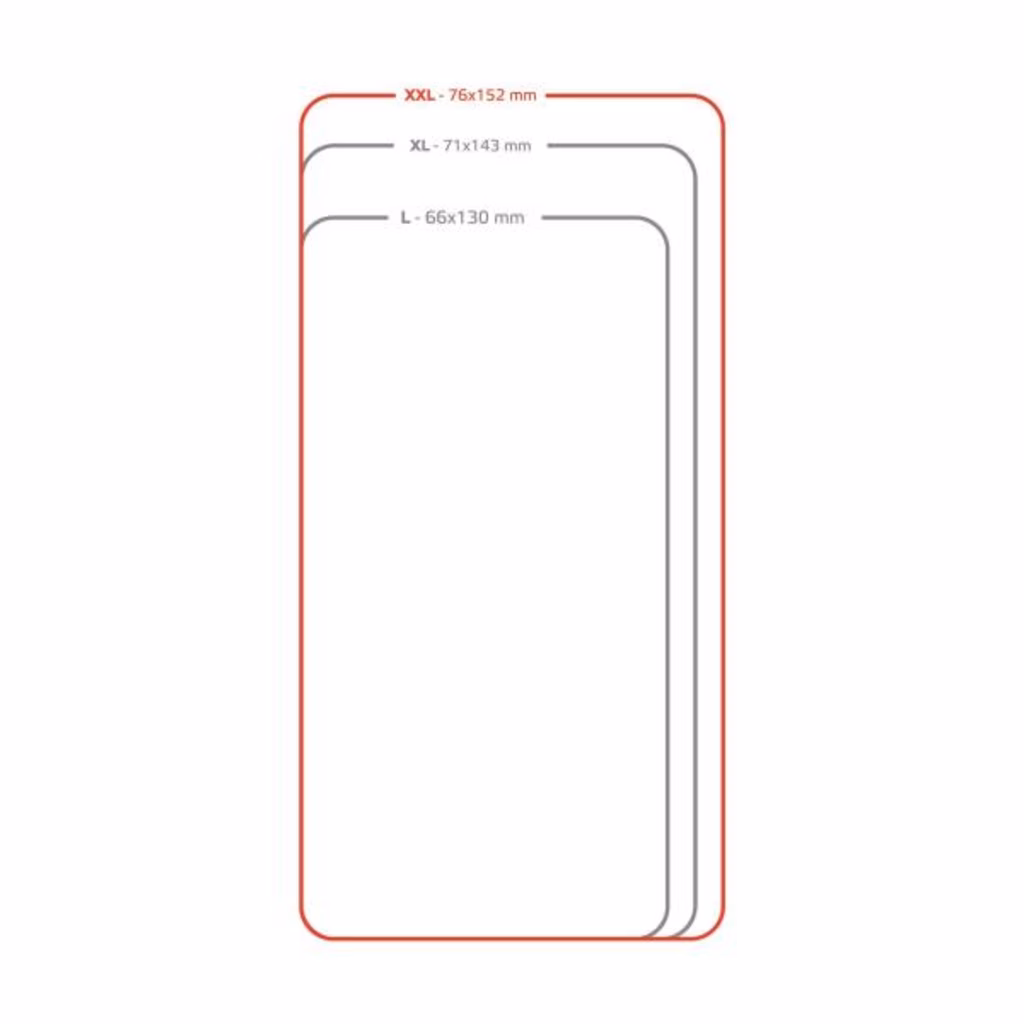 Disponibile in 3 diverse taglie, trova la misura ideale per lo smartphone grazie allo schema posto sul retro della confezione.