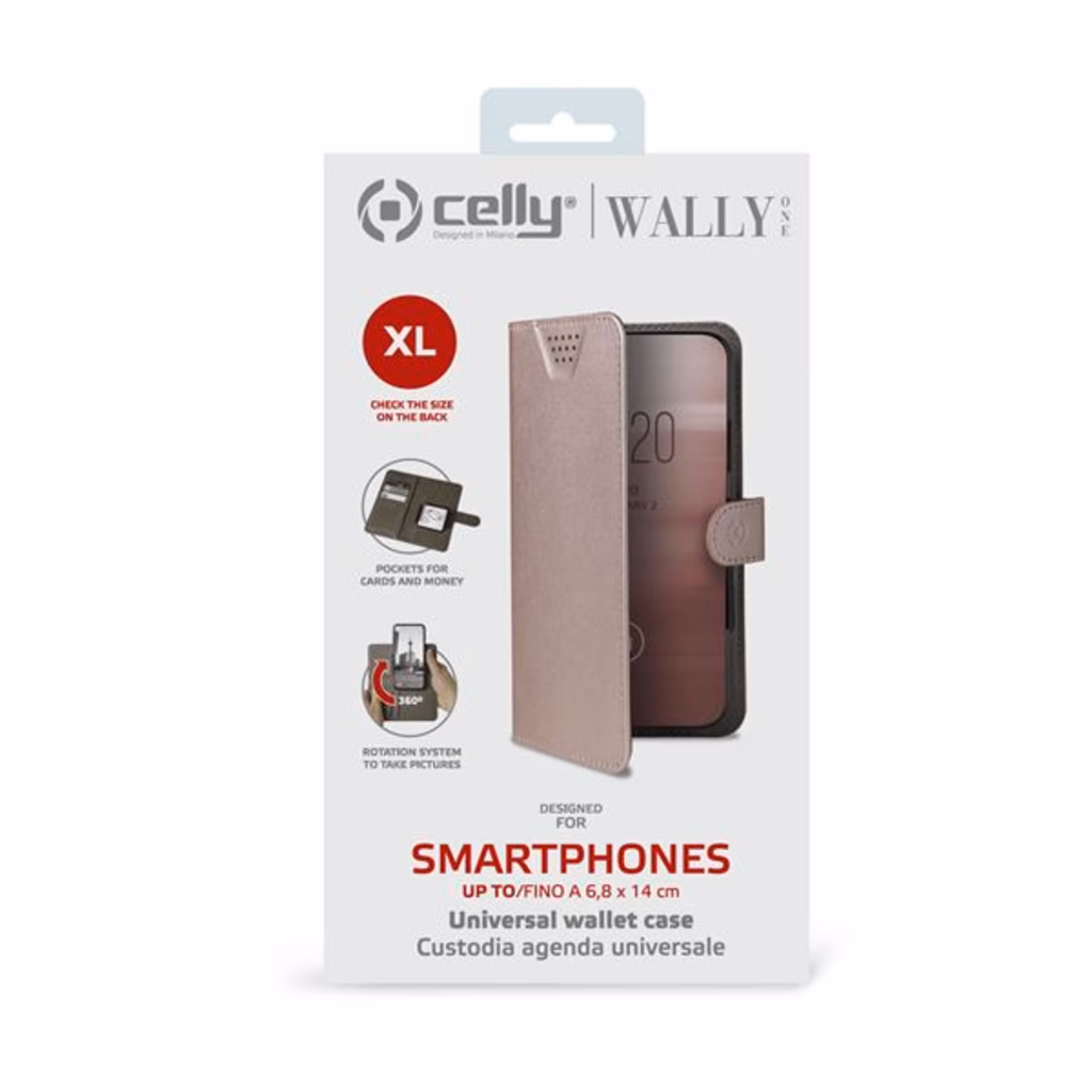 Immagine di Cover similpelle rosa CELLY WALLY ONE - Universal Case Display Size 5.0"-5.5" WALLYONEXXLPK