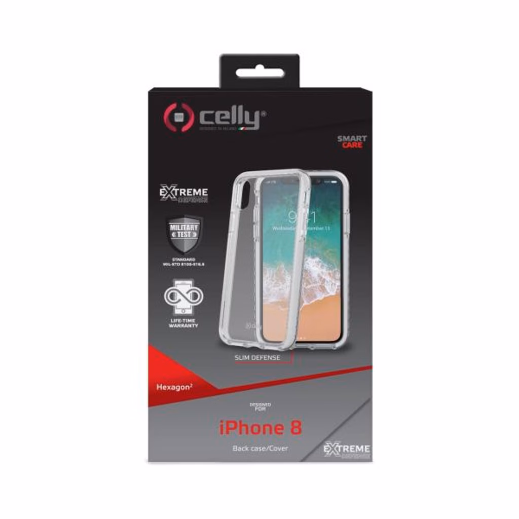 HEXAGON è la cover trasparente ultra resistente progettata con uno strato interno in speciale gomma termoplastica di alta qualità e retro rigido in policarbonato per assicurare massima resistenza da urti e cadute.