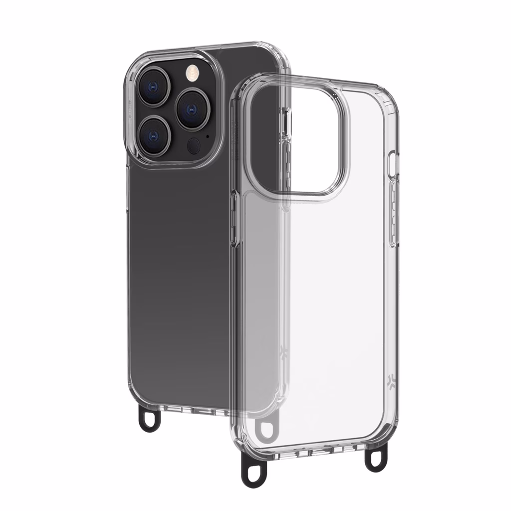Immagine di Cover tpu + policarbonato Trasparente CELLY FREEDOM CASE - Case iPhone 14 Pro + black lacet F FREED