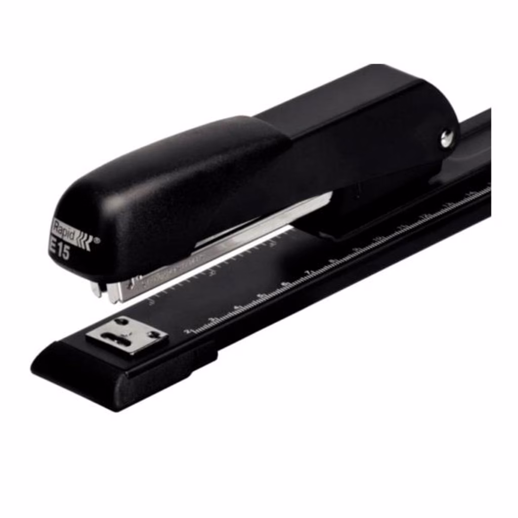 Cucitrice a braccio lungo Rapid E15 da 305 mm, permette di cucire nel mezzo di qualsiasi tipo di foglio.