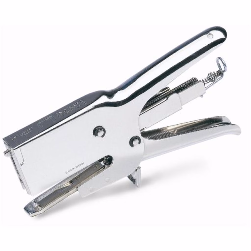 Cucitrice in acciaio cromato. Ideale per imballaggio, blisterature; per cucire fino a 70 fogli, plastiche e cartoni.