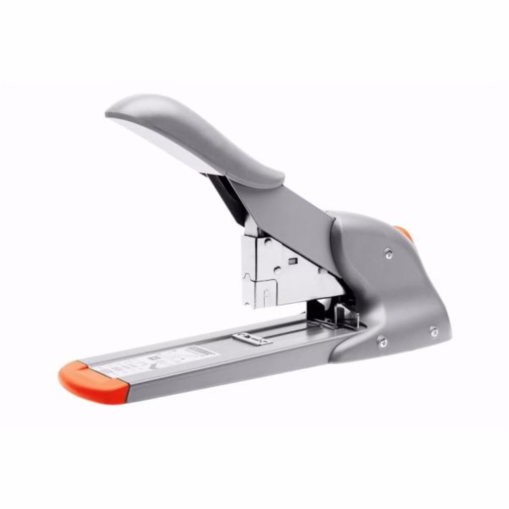 Robusta cucitrice per alti spessori a caricamento frontale per punti di tipo 9 e 23. Un meccanismo a leva permette all'utilizzatore di cucire fino a 210 fogli alla volta. Profondità di cucitura 65 mm. La HD210 grigo arancio è parte della gamma Coordinated Power con la cucitrice elettronica Rapid 5050 e il perforatore  HDC65