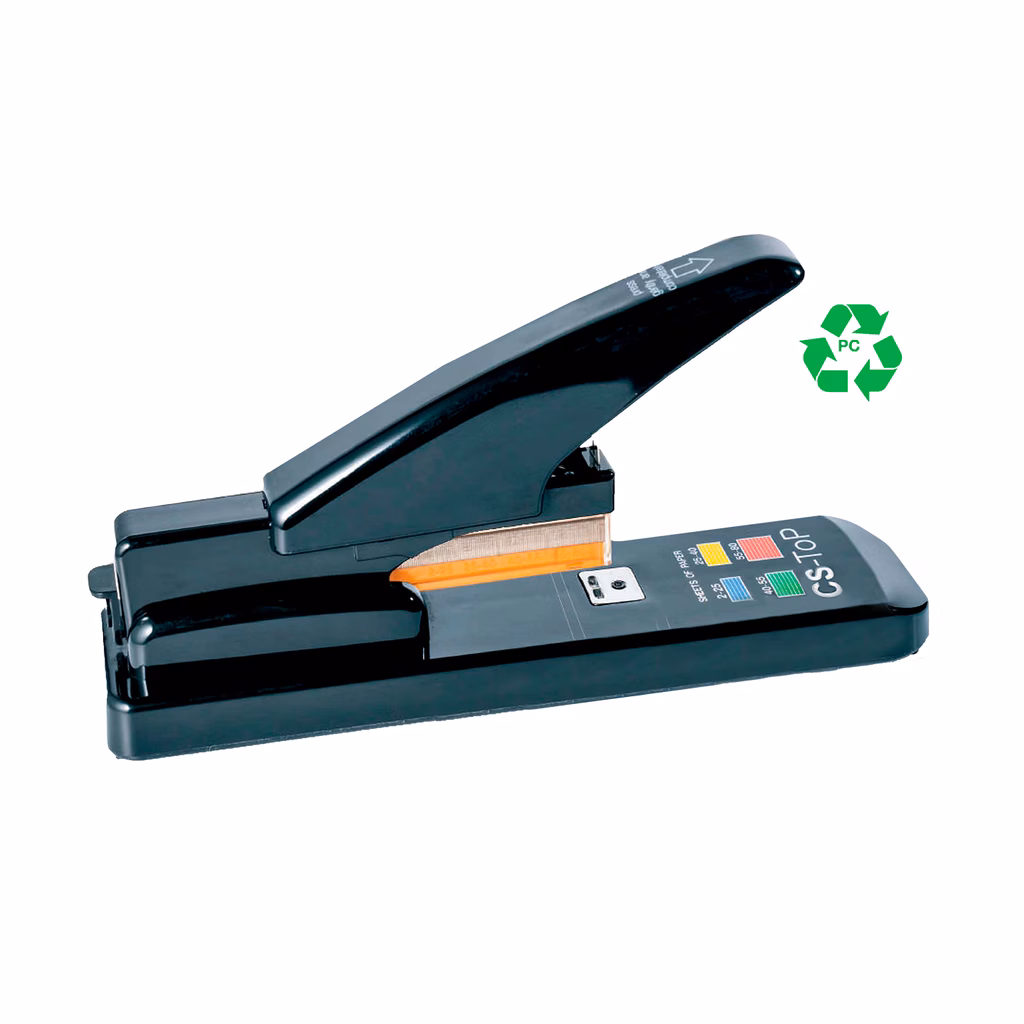 Cucitrice a caricatori in policarbonato leggero, resistente e riciclabile, con base antiscivolo. Le dimensioni compatte ed il peso ridotto ne consentono l'utilizzo nelle quotidiane operazioni di ufficio senza ingombro dello spazio sulla scrivania. Il meccanismo di cucitura a caricatori consente di graffare senza sforzo fino a 80 fogli. Dimensioni: cm 29,6x7x13,5. Peso: 330 grammi.