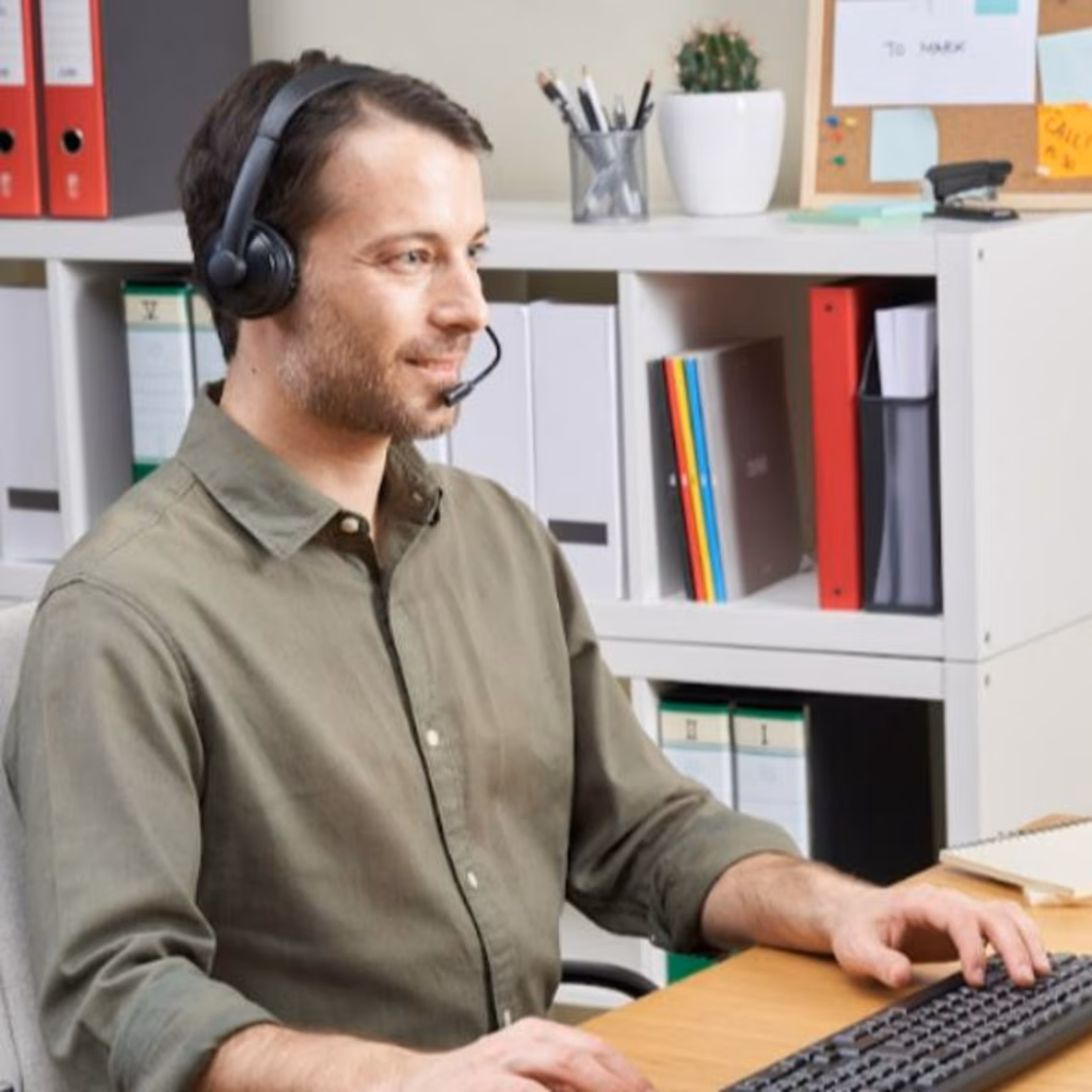 Cuffie PC con connettore USB, regolazione del suono, modalità mute dell'altoparlante e del microfono.