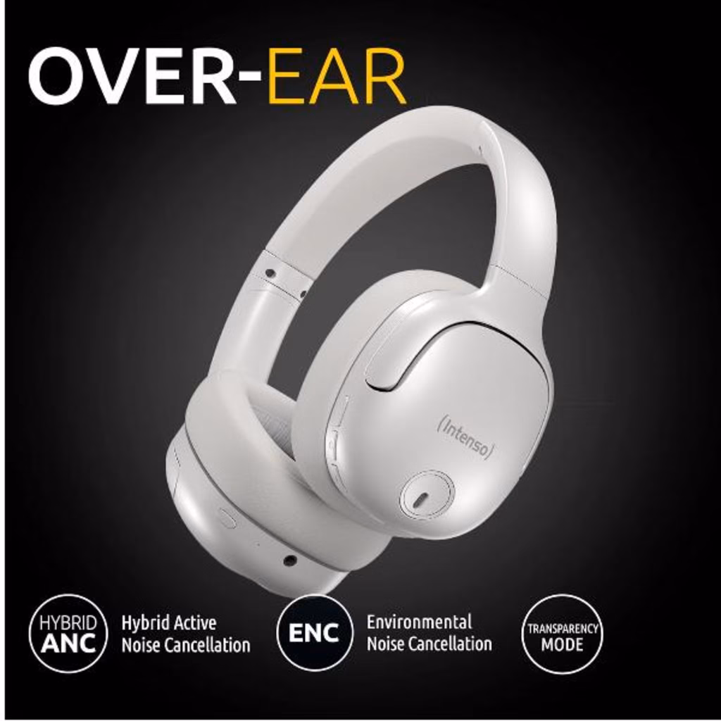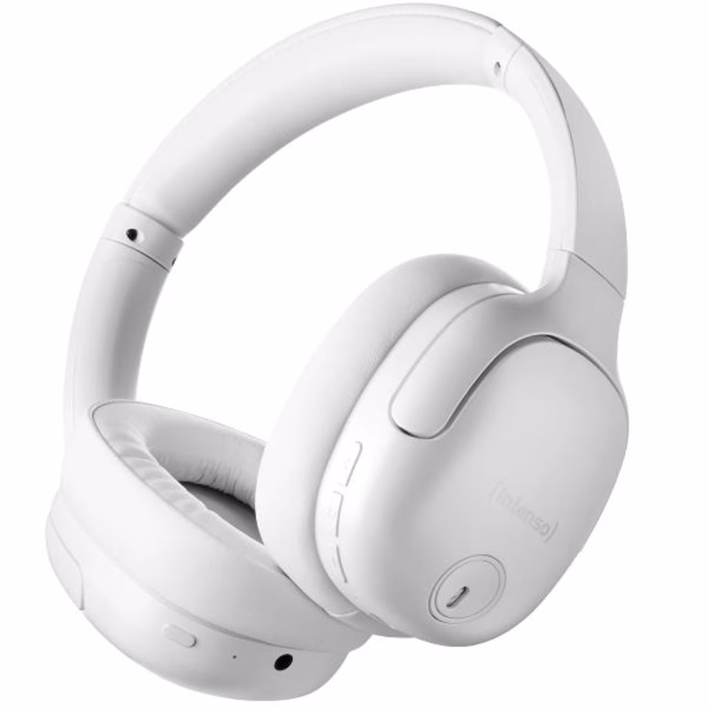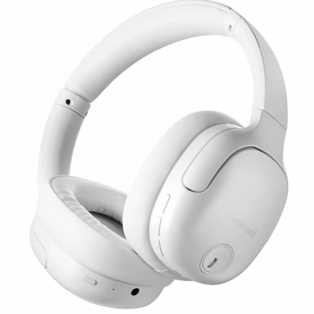 Design moderno e cancellazione efficace del rumore: le cuffie 0400HA Over-Ear di Intenso sono disponibili nei colori Nero, Bianco, Rosa e Blu e offrono un design elegante. Dotati di Hybrid Active Noise Cancelling (ANC) riducono efficacemente il rumore ambientale. La modalità Trasparenza consente il passaggio di rumori, esterni, ideale per l'uso quotidiano.                                                                                                              Qualità del suono e utilizzo flessibile la modalità Musica offre un suono bilanciato per un'esperienza audio completa. Oltre all'uso wireless tramite Bluetooth 5.3, l'0400HA può essere utilizzato anche in modalità passiva tramite cavo da 3,5 mm. Con una portata fino a 15 metri e una gamma di trasmissione da 20 Hz a 20 KHz, sono versatili.                        Comfort duraturo e pratici accessori: con una durata della batteria fino a 75 ore e la funzione di ricarica rapida (6 ore di riproduzione dopo 15 minuti di ricarica), l'0400HA è ideale per lunghe sessioni di ascolto. Pieghevoli, regolabili e con morbidi cuscinetti auricolari offrono il massimo comfort. La confezione include un cavo da USB-C a USB-C e un cavo audio da 1,5 m.