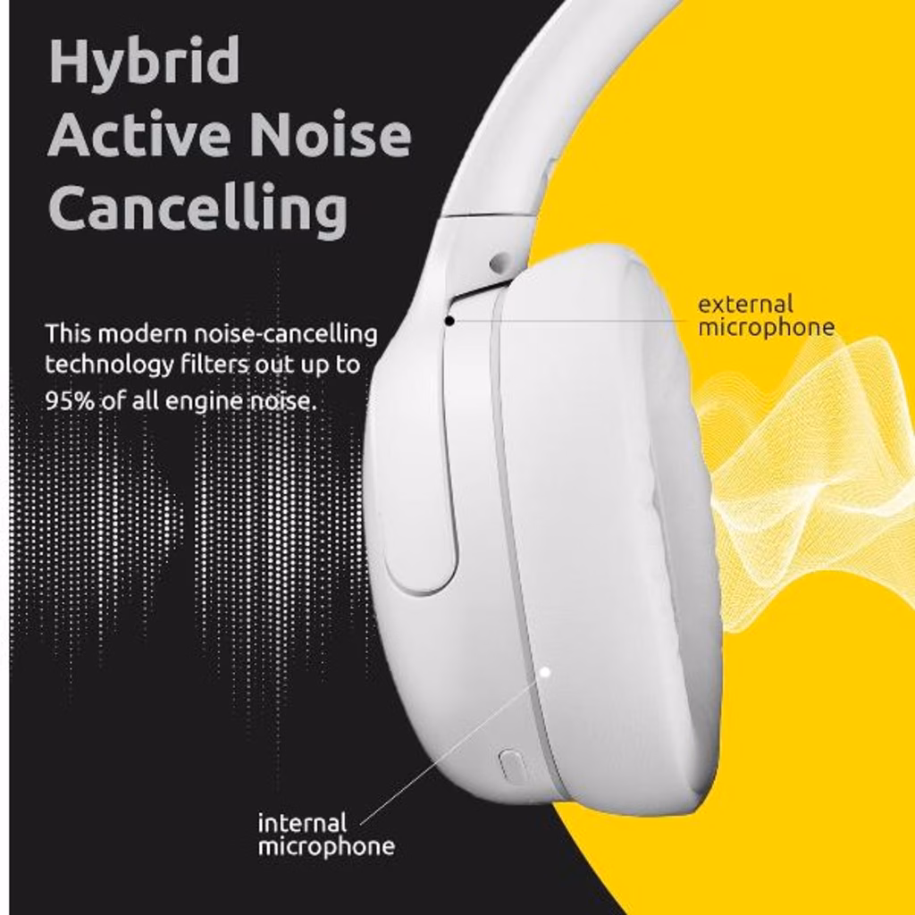 Cuffie Over-Ear Hybrid Active Noise Cancelling, fino a 75 ore di autonomia e Bluetooth 5.3, con modalità musica, modalità trasparente e tempo di ricarica veloce, Blu