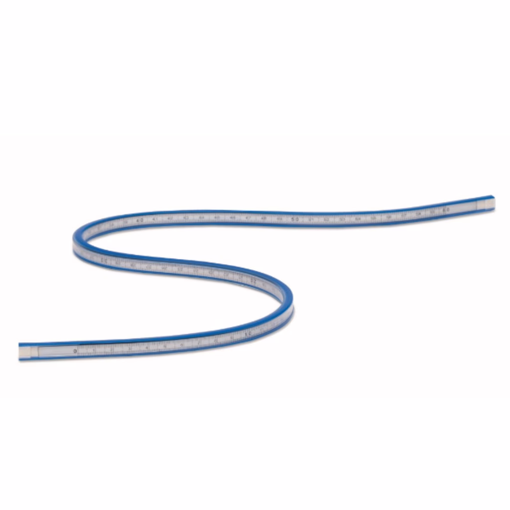 Curva flessibile con tira-china ideale per tracciare curve e raccordi. Mantiene la forma nella quale viene piegata. Lunghezza di 60 cm.