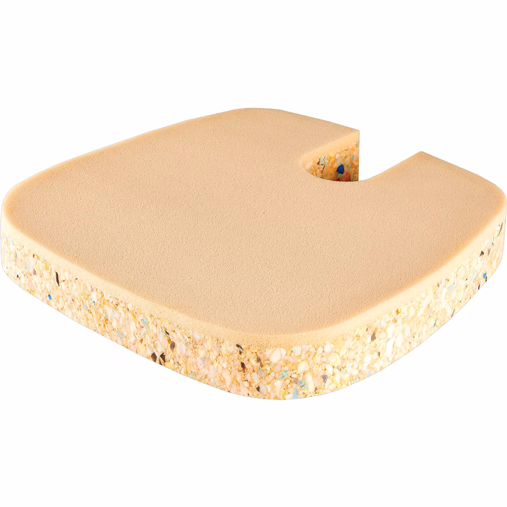 L'imbottitura doppia densità garantisce comfort e supporto. Il foro per la zona del coccige nascosto nell'imbottitura aiuta ad alleviare la pressione alla base della spina dorsale. Dotato di maniglia per il trasporto. Base dell'imbottitura in schiuma per il 93% proveniente da materiale riciclato pre-consumo.