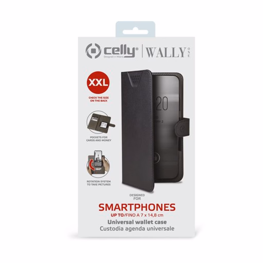 Custodia similpelle nero CELLY WALLY ONE - Universal Case Display Size 5.0"-5.5" WALLYONEXXLBK