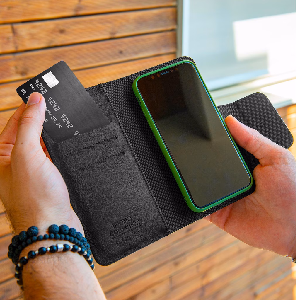 DUOMO è la custodia portafoglio universale con chiusura magnetica che ti permette di avere sempre a portata di mano carte di credito, contanti, documenti e il tuo smartphone!
