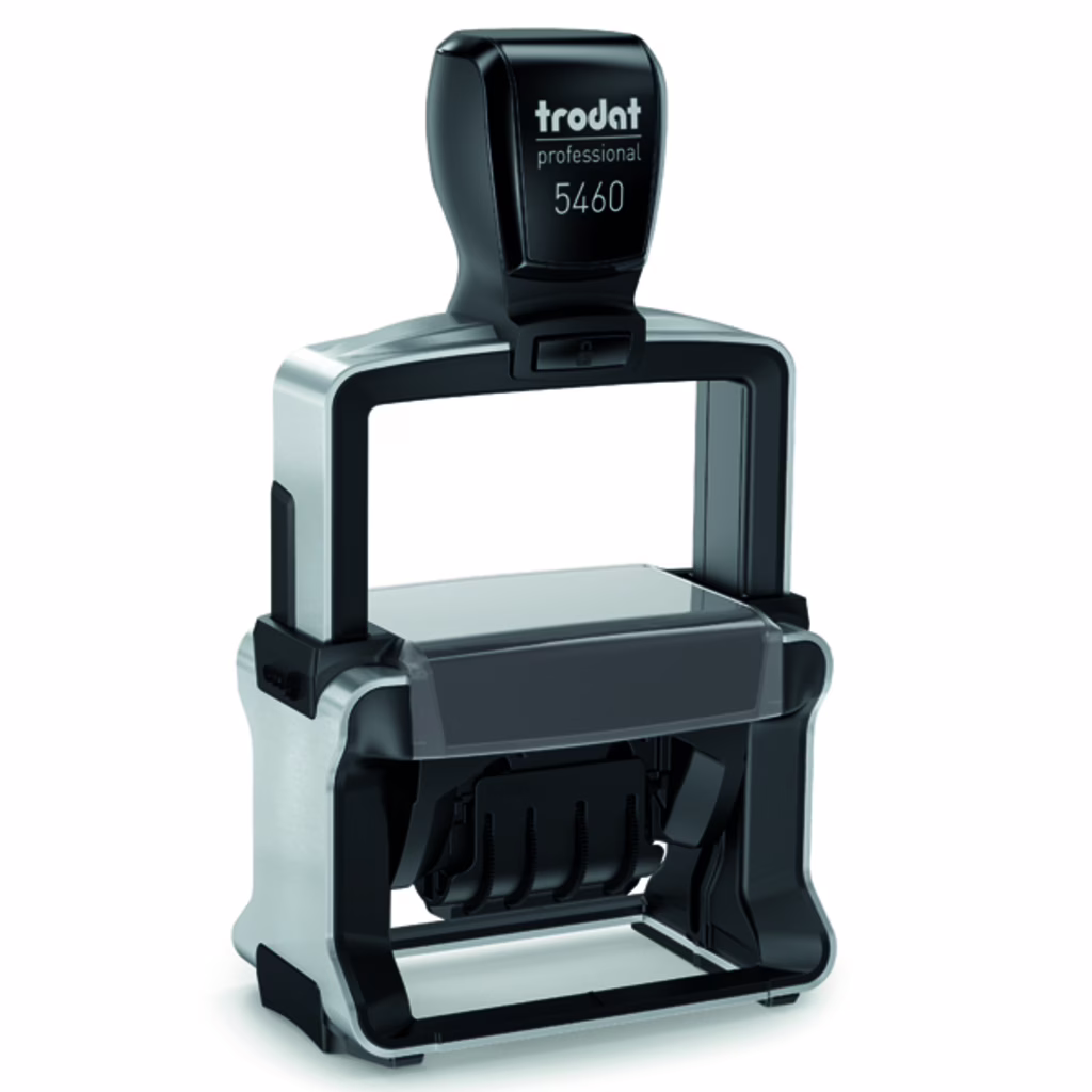 Datario autoinchiostrante per uso intensivo in semplicità e con poca fatica. Impugnatura ergonomica con elementi soft touch. Dimensioni ridotte e notevole leggerezza. Elevatissima stabilità e resistenza grazie alla struttura in acciaio inox. Copertura delle bande per un'impostazione della data rapida e pulita. Nuove rotelle di avanzamento più ampie e morbide. Datario dodecennale. Sostituzione della cartuccia più semplice e pulita grazie a speciali impugnature. Altezza data 4 mm A) 5430/L: con 3 testi intercambiali RICEVUTO-PAGATO-REGISTRATO; B) 5460/L: datario autoinchiostrante con 2 diciture a scelta RICEVUTO o PAGATO. Data garantita per i successivi 12 anni.