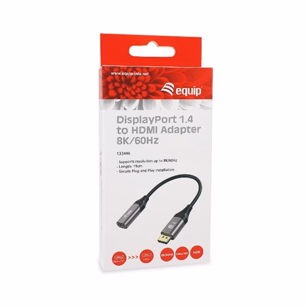 L'adattatore equip® DisplayPort 1.2 a HDMI è un dispositivo che consente di collegare un computer o un altro dispositivo con uscita DisplayPort a un televisore o monitor con ingresso HDMI. L'adattatore supporta la risoluzione 8K/60Hz, garantendo una riproduzione video chiara e fluida. Con questo adattatore è possibile collegare facilmente il computer portatile, il desktop o un altro dispositivo a uno schermo più grande senza dover ricorrere a configurazioni complicate o a più cavi.