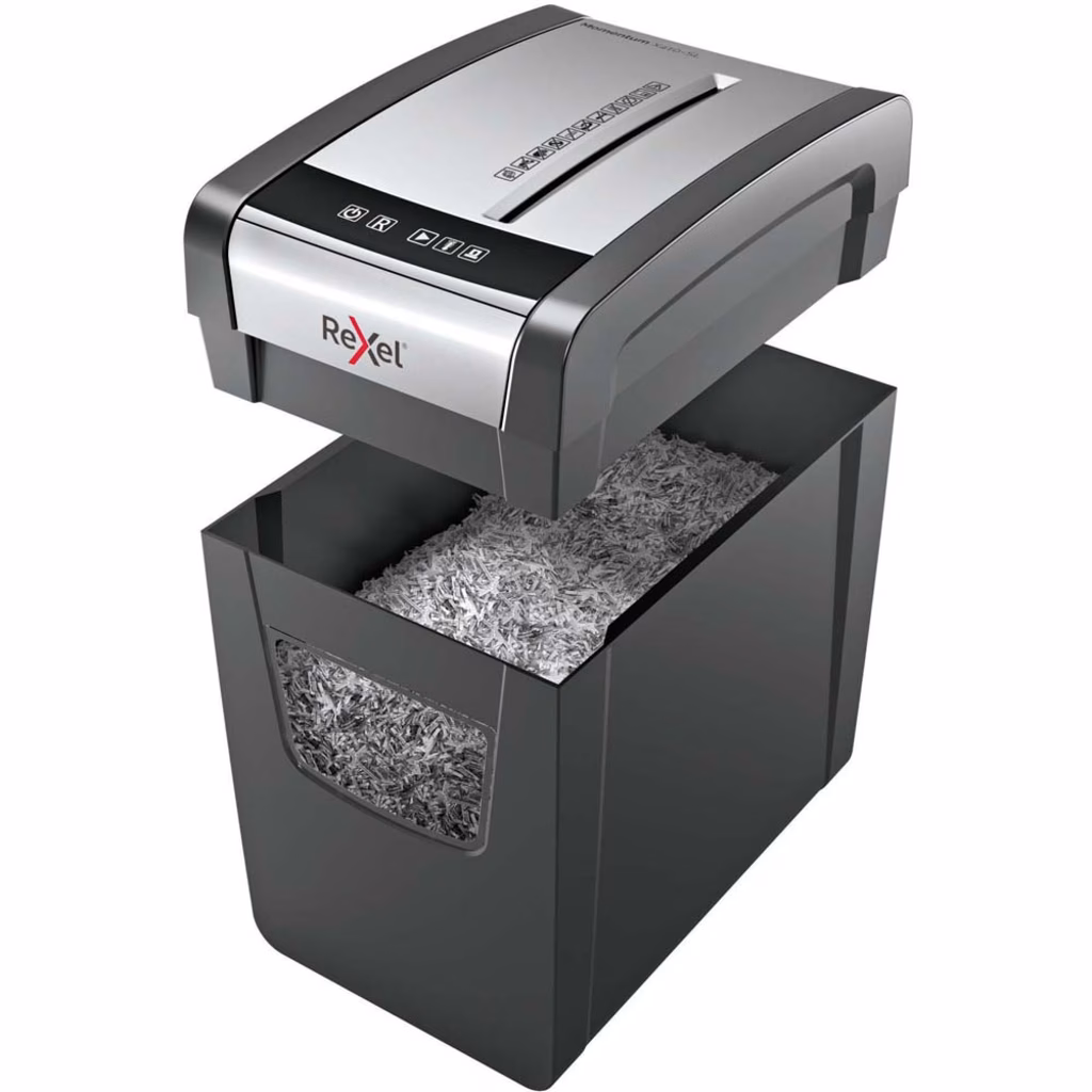 Immagine di Distruggidocumenti a frammenti REXEL MOMENTUM X308 livello sicurezza P-3 colore grigio
