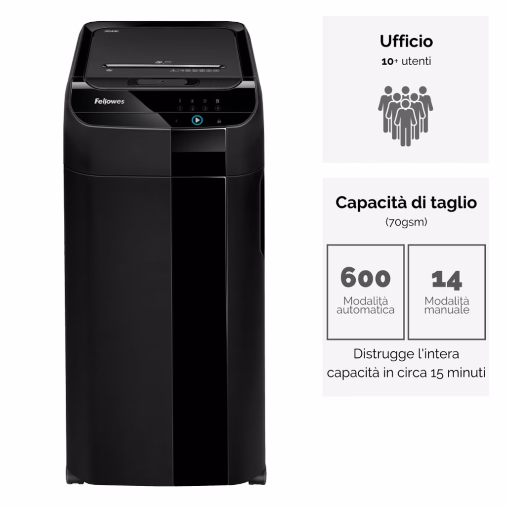 Distruggidocumenti a microframmenti FELLOWES AUTOMAX 600M livello sicurezza P-5 colore nero