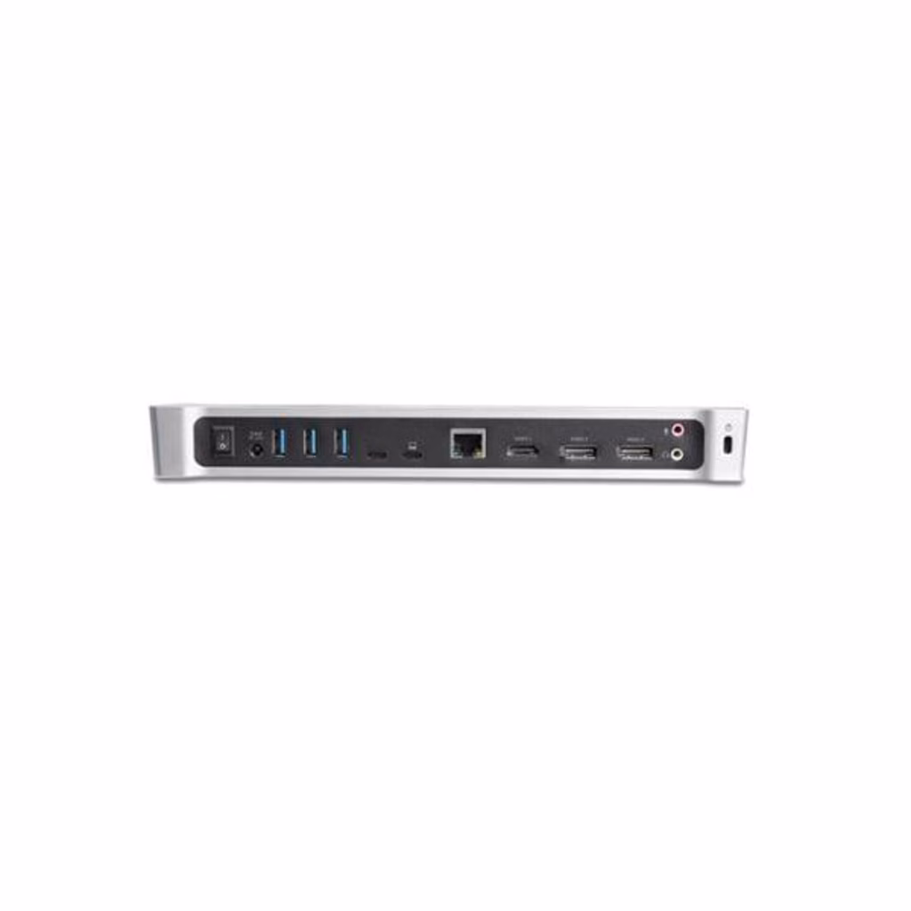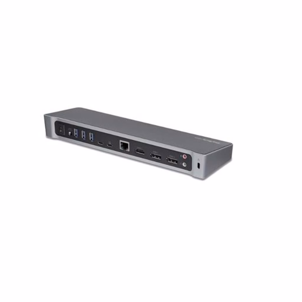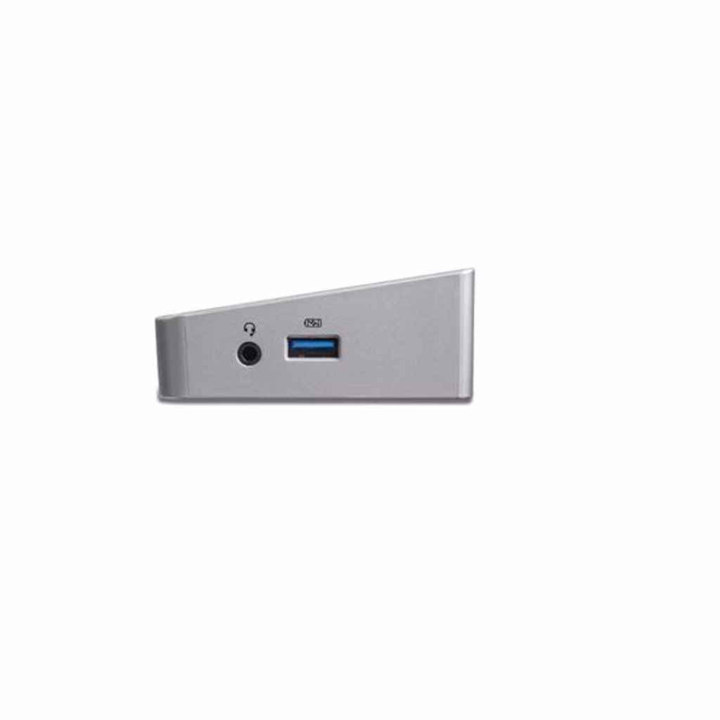 Questa docking station per tre monitor consente di trasformare il computer laptop in una workstation di grandi dimensioni. Offre infatti cinque porte USB 3.0 (1 USB Type-C e 4 USB Type-A, di cui 1 per la ricarica rapida), una porta Gigabit Ethernet, jack per cuffie e porte separate da 3,5 mm per microfono e audio.