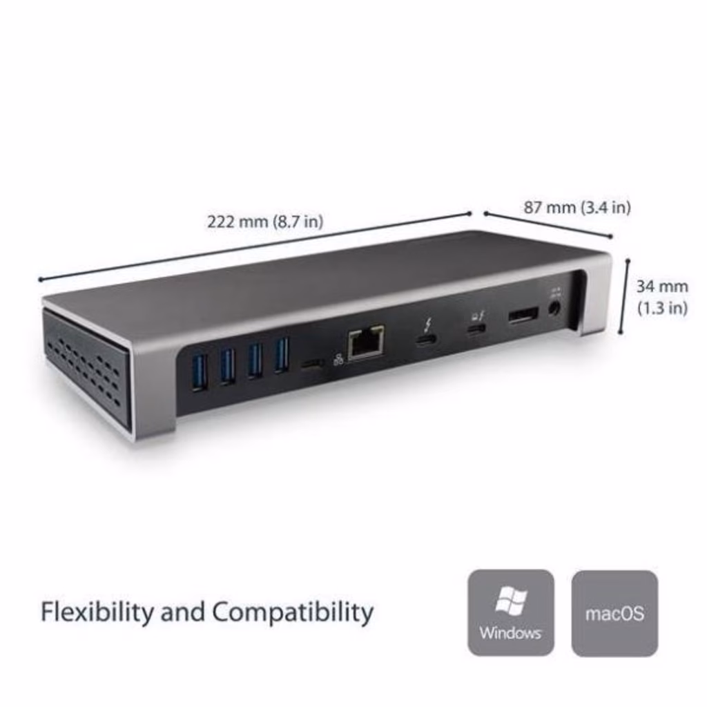 Consente di trasformare con facilità un laptop Windows o MacBook Pro con tecnologia Thunderbolt 3 in una workstation con due monitor 4K e una velocità effettiva fino a 40 Gbps. Questa dock TB3 di alta qualità offre infatti sei porte USB 3.0, funzionalità Power Delivery a 85 W per la ricarica del laptop e un lettore per schede SD.