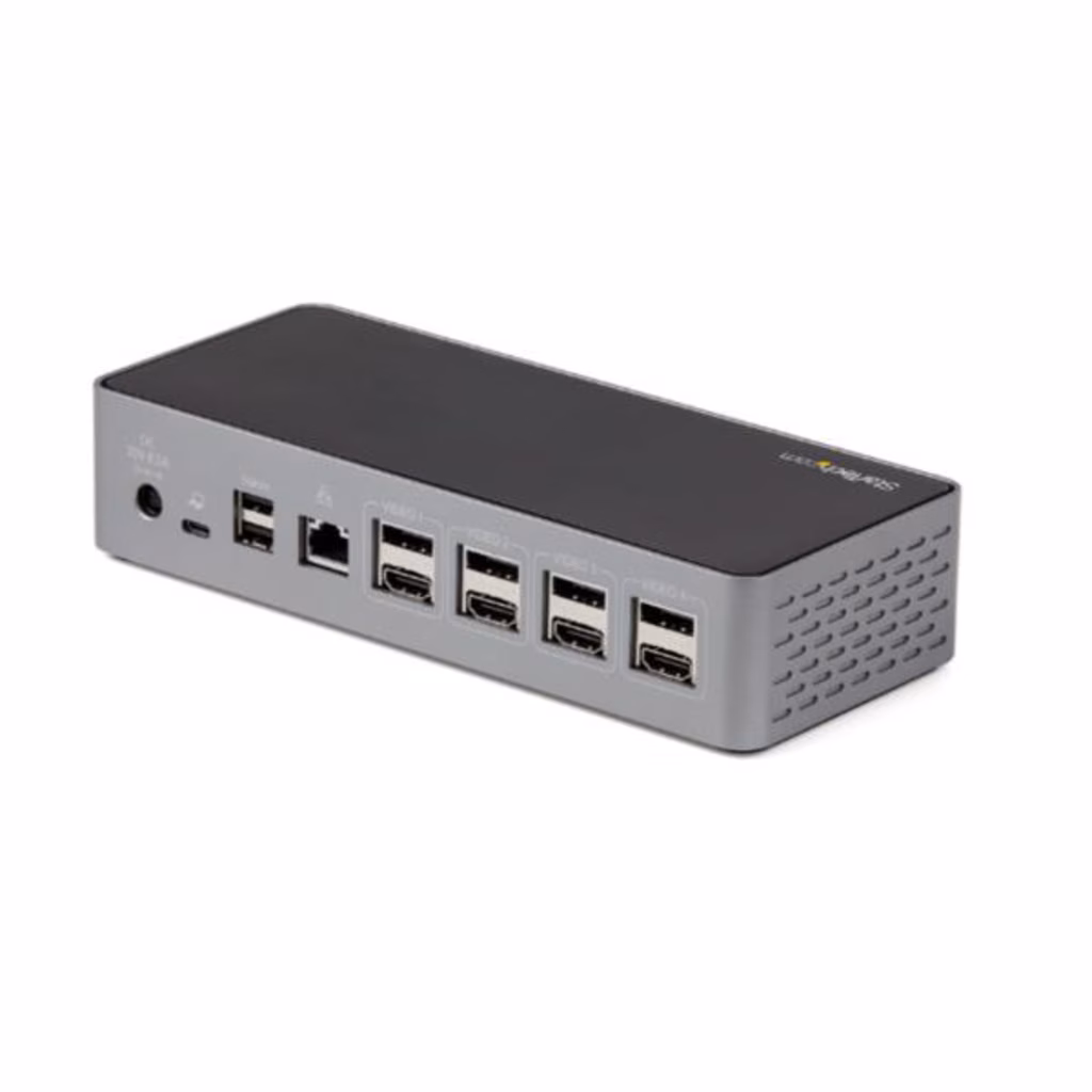 • INSTALLAZIONE E GESTIONE SEMPLICE: Docking station per display quadrupli con cavo Host USB-C da 1m (certificato USB-IF), pulsante di accensione/spegnimento anteriore, k-slot e fori di montaggio - Ventilazione ottimizzata per un raffreddamento maggiore
