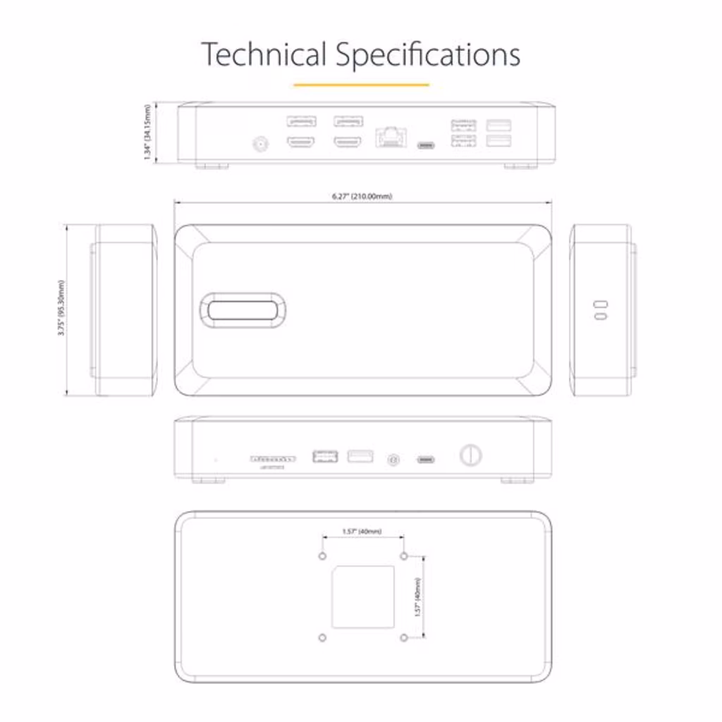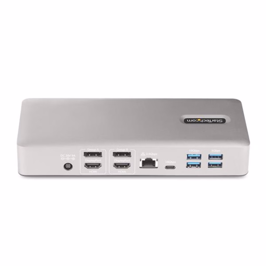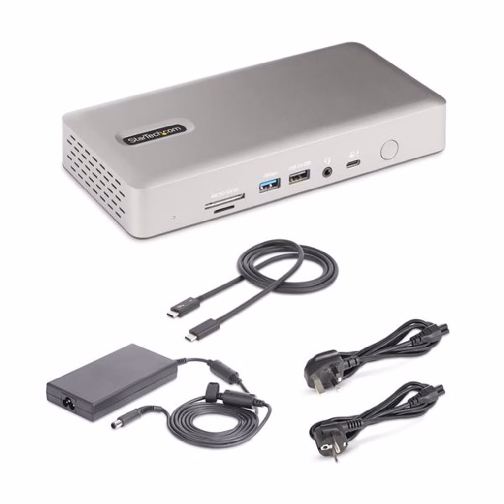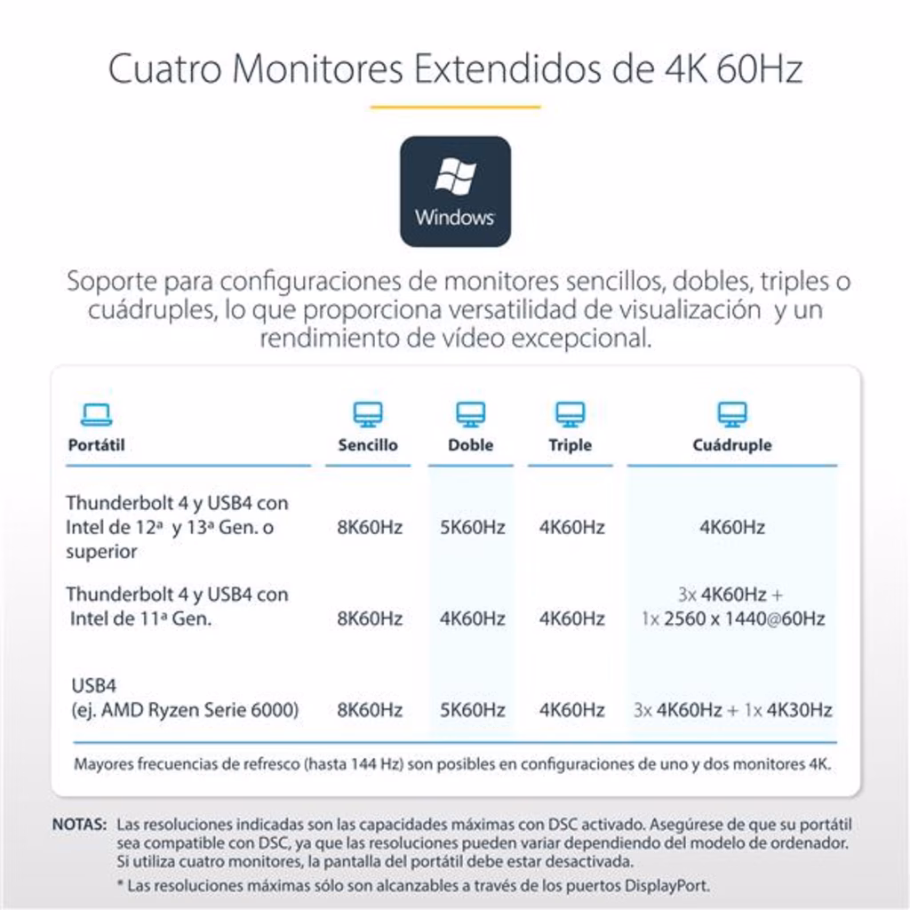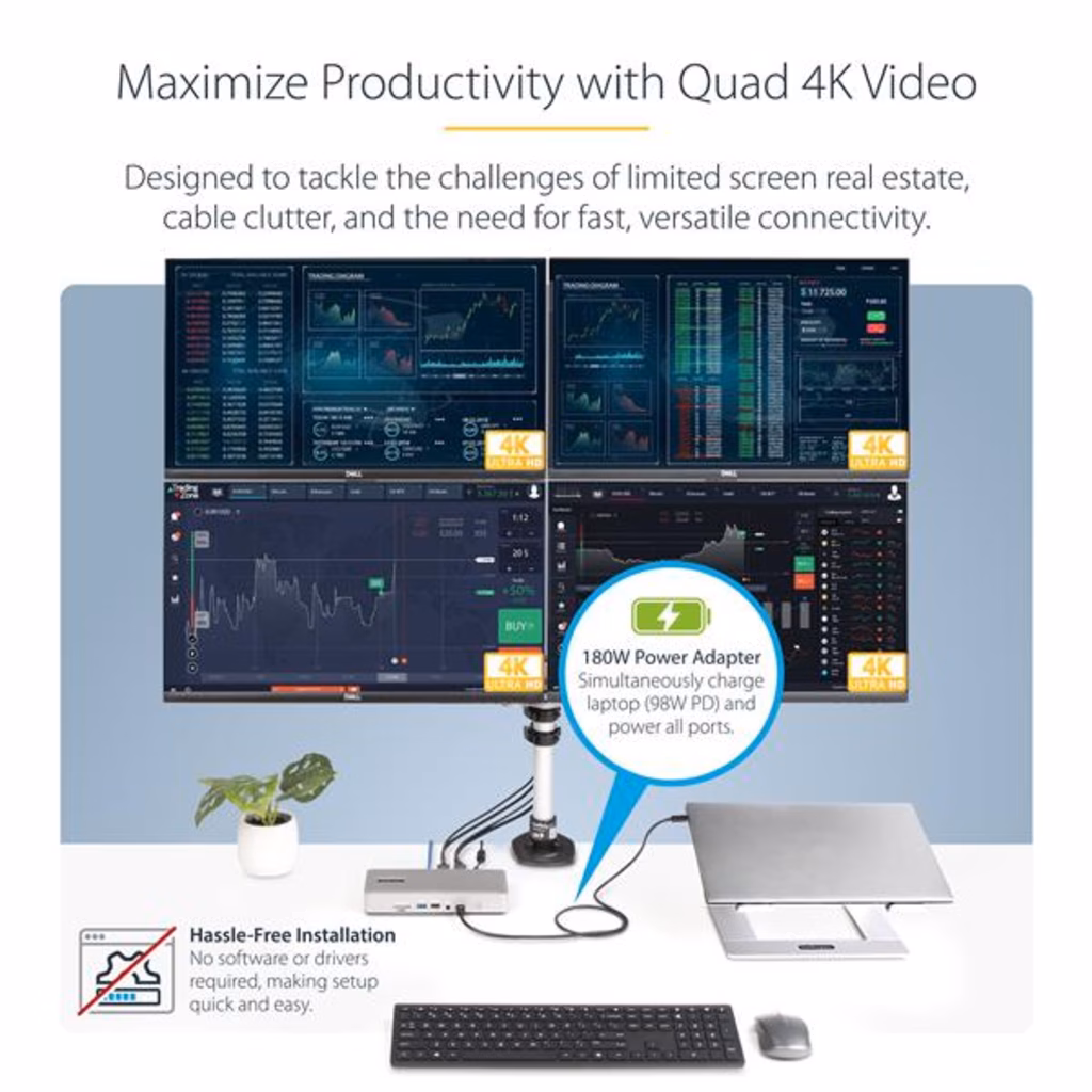 Trasformare Laptop Thunderbolt 4 in una workstation multi monitor ad alta risoluzione con 7 porte USB,  1 porta 2,5 Gigabit Ethernet, audio da 3,5 mm, oltre a USB Power Delivery e alla ricarica di dispositivi in downstreamDOCK THUNDERBOLT 4 AD ALTE PRESTAZIONI: configurazione senza driver; 2x DisplayPort; 2x HDMI; Hub USB a 7 porte (3x USB-A 10Gbps/1x USB-C 10Gbps/2x USB-A 5Gbps/1x USB 2.0); lettori di schede SD e mSD; 2,5GbE; K-Slot; jack per cuffie da 3,5 mmFLESSIBILITÀ MULTI-MONITOR: supporta fino a 4x display 4K 60Hz con CPU Intel di 12ª Gen (o superiore) che supportano DP 1.4 con DSC; 4x display a risoluzioni inferiori senza DSC o con CPU Intel di 11ª Gen (o inferiore); 1x display HDMI 8K 60Hz 4k 144HzCOMPATIBILITÀ: Windows, macOS e Ubuntu; funziona con tutti i laptop Thunderbolt 4/3 e USB4; display quadruplo sui laptop Windows; doppio display su MacBook Pro (Apple M1/M2/M3 Max e Pro); display singolo su MacBook Air98W POWER DELIVERY: include un adattatore di alimentazione per caricare simultaneamente il laptop (98W PD) e alimentare tutte le porte; la porta USB 2.0 supporta 7,5W (1,5A) per la ricarica di dispositivi mobili o altri dispositivi alimentati a batteriaVANTAGGI IT PRO: Include un cavo host TB4 da 1m; fori di montaggio per staffe opzionali (SSPMSVESA/SSPMSUDWM); K-slot; software Connectivity Tools con MAC Address Pass-Through, USB Event Monitoring, WiFi Auto Switching e utilità di layout di Windows