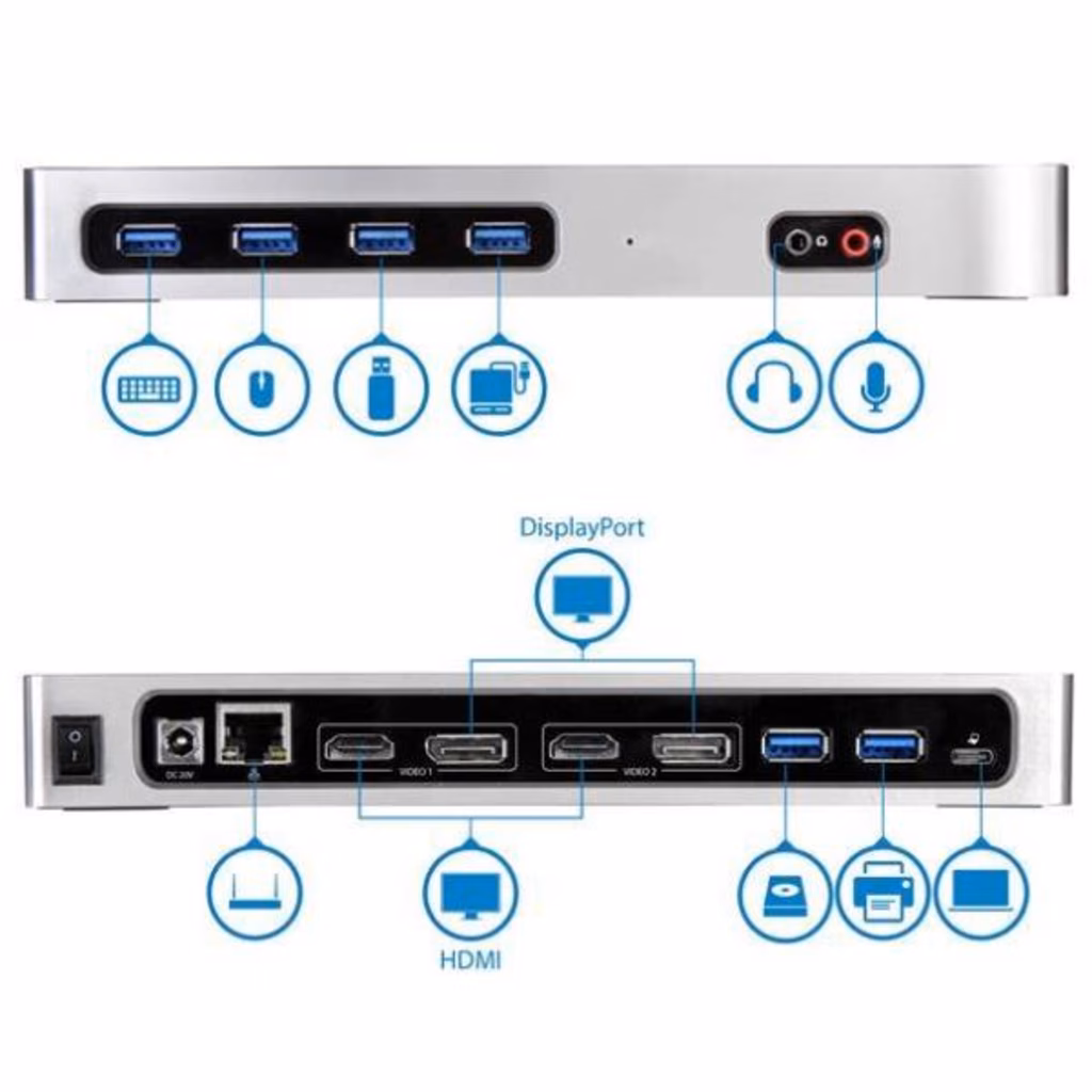La docking station USB 3.0 supporta i computer laptop Windows o Mac dotati di funzionalità USB-C e USB-A. Questo significa che è possibile collegare i modelli più recenti di computer laptop USB-C o Thunderbolt 3 ed estendere la vita d quelli con tecnologia USB 3.0 (Type-A) di precedente generazione.