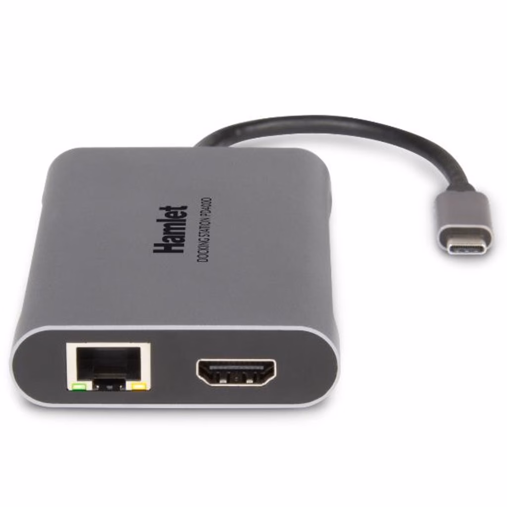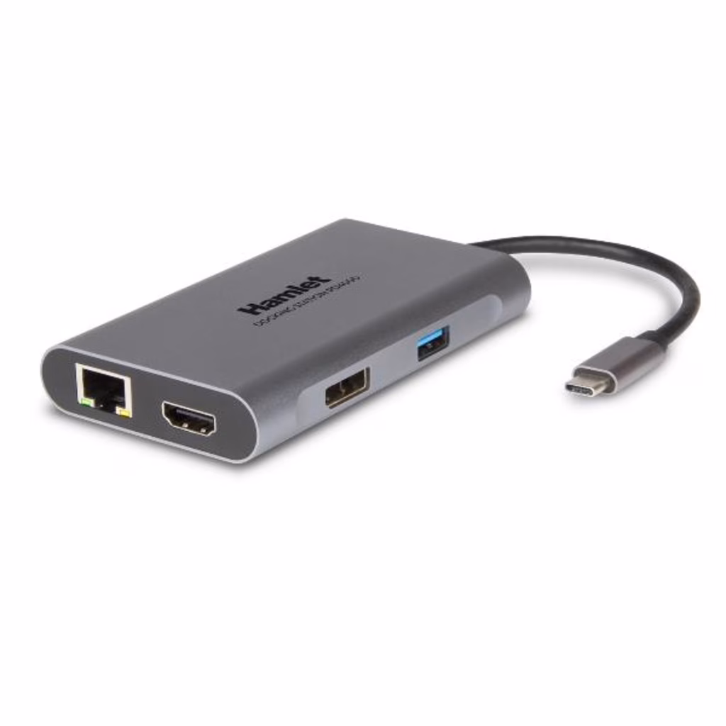La Docking Station PD400D di Hamlet consente di ampliare l'area di lavoro dello schermo e la connettività del notebook utilizzando un solo cavo USB Type-C. Le due uscite video HDMI e DisplayPort con supporto 4K Ultra HD permettono di collegare due monitor esterni per duplicare o estendere il desktop del computer su schermi più grandi. Le tre porte USB 3.0 offrono connettività per dispositivi esterni come tastiere, mouse ed hard disk e supportano la ricarica di dispositivi come smartphone e tablet. Completa la connettività della docking station la porta di rete Gigabit per il collegamento alla rete LAN e Internet.La porta USB-C della Docking Station PD400D adotta la tecnologia di ricarica Power Delivery 3.0 (PD) che consente di ricaricare il notebook con una potenza totale di 85 Watt.