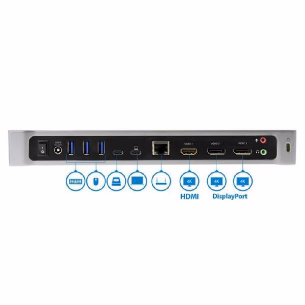 Questa docking station per tre monitor consente di collegare le periferiche preferite in modo da trasformare il computer laptop in una workstation di grandi dimensioni. Con cinque porte USB 3.0 (1 USB Type-C e 4 USB Type-A, tra cui 1 porta per la ricarica rapida), una porta Gigabit Ethernet, jack per cuffie e porte separate da 3,5 mm per microfono e audio, sono disponibili tutte le connessioni necessarie per massimizzare le prestazioni.