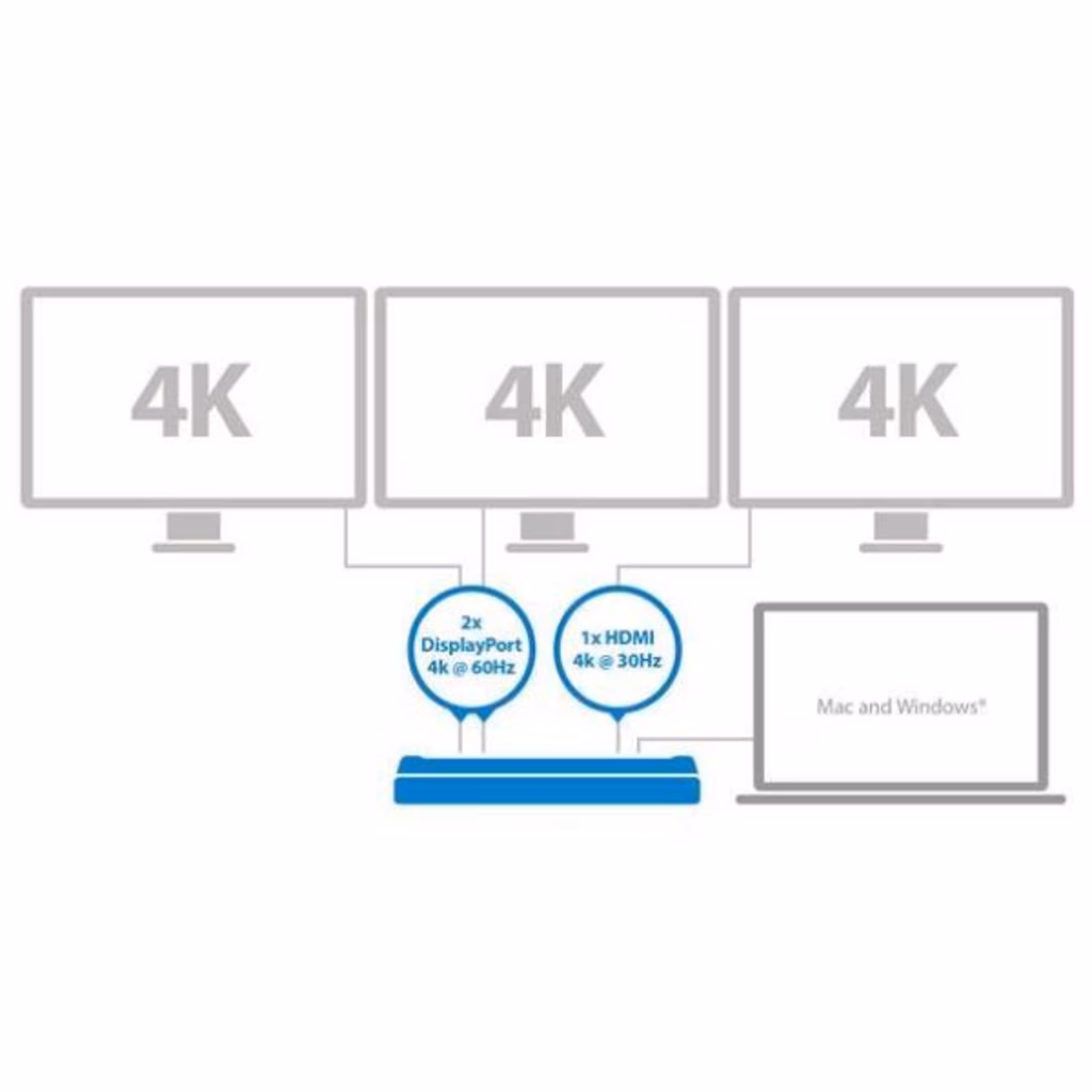 La Docking Station per Portatili USB-C 4K per Mac o Windows consente di creare una workstation Ultra HD con tre monitor. È possibile collegare: