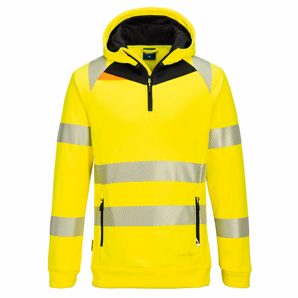 Dx4 felpa con cappuccio hi-vis 1/4 zip PORTWEST DX482 colore Yellow/Black taglia L